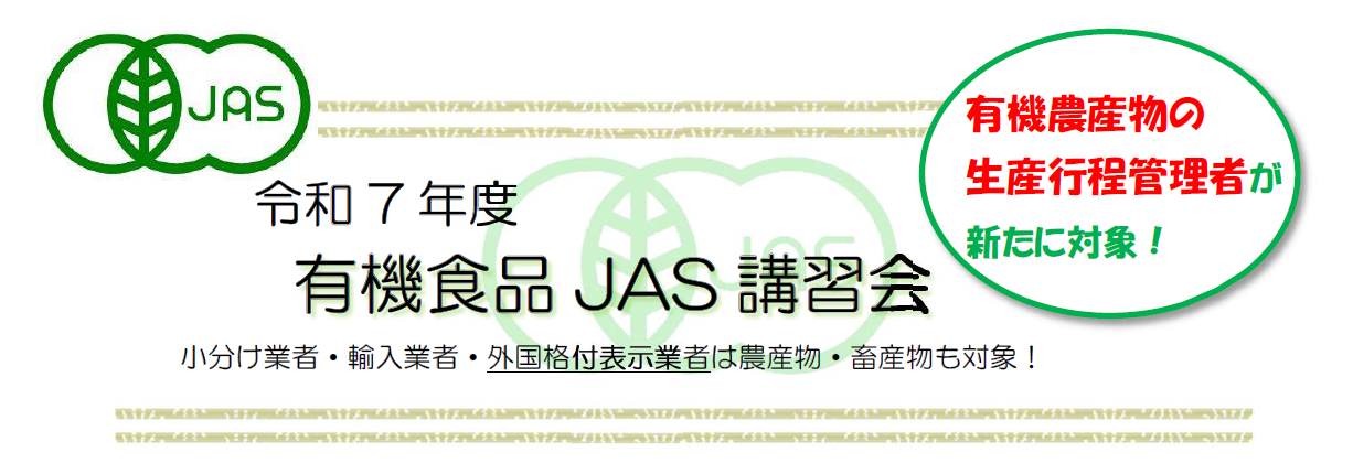 開催案内詳細 は、「有機食品JAS講習会 開催案内」を参照ください。