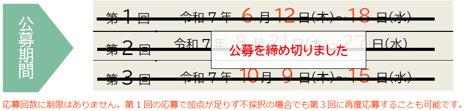 - 第3回公募期間:令和7年10月9日(木)~15日(水) 必着