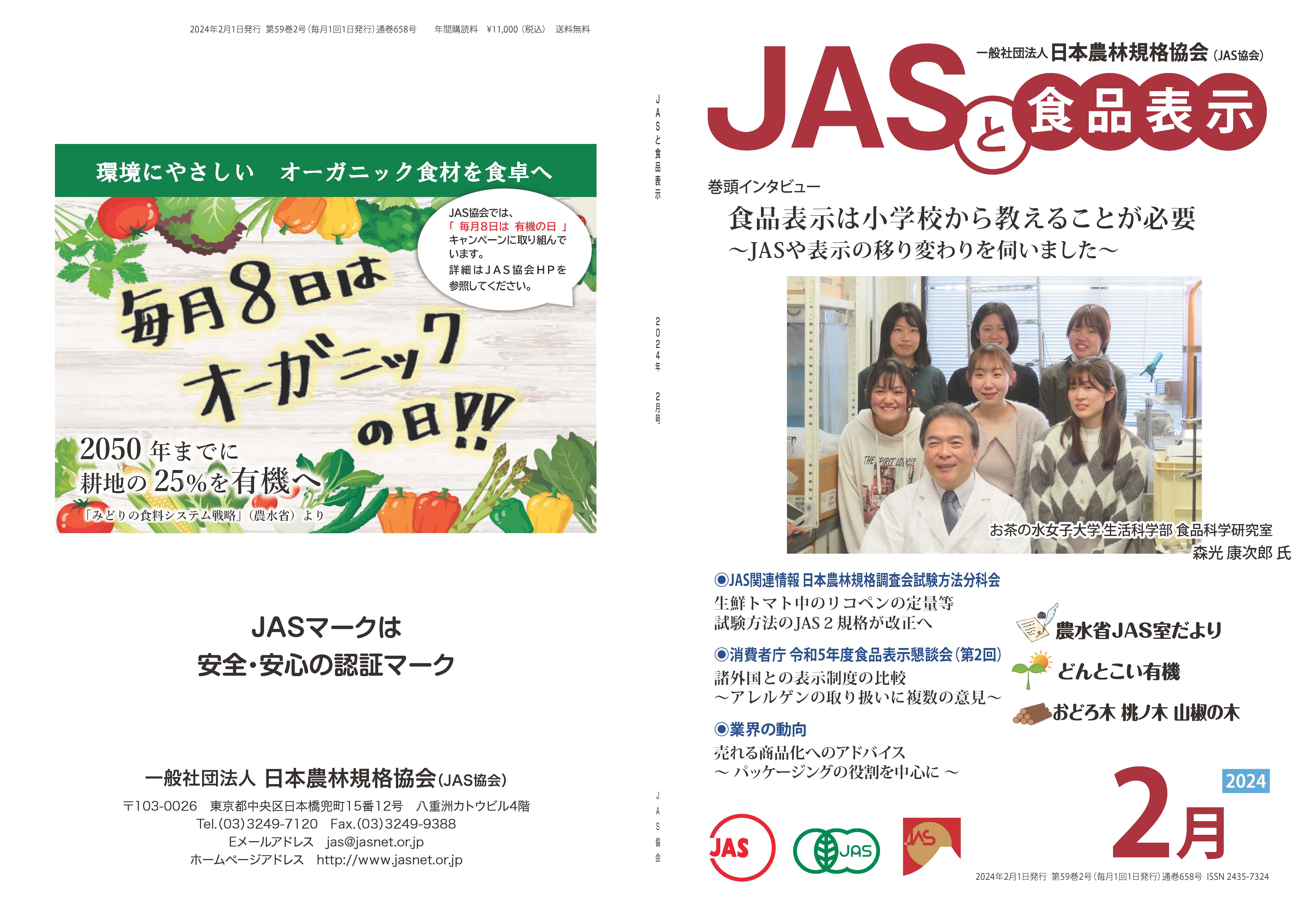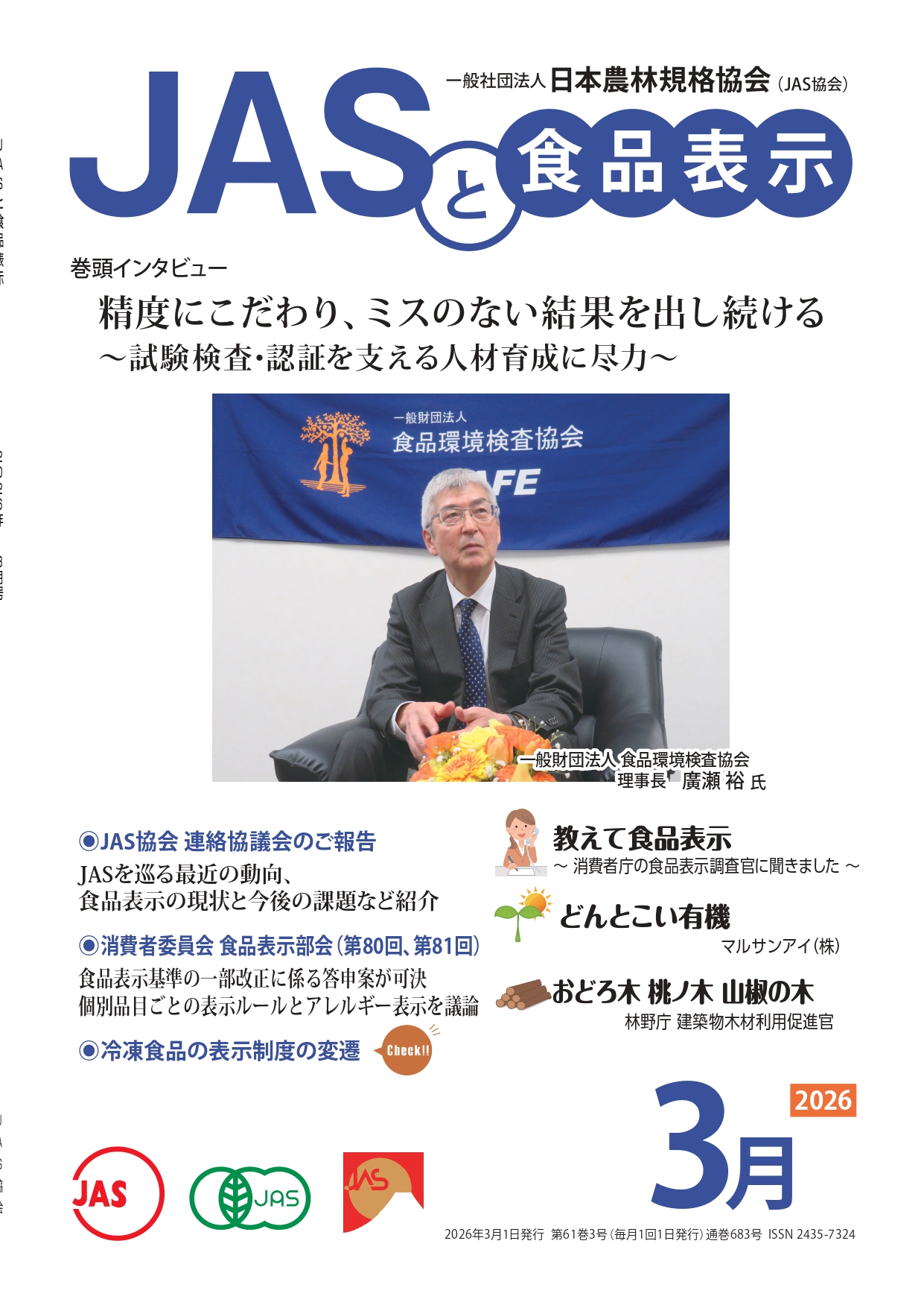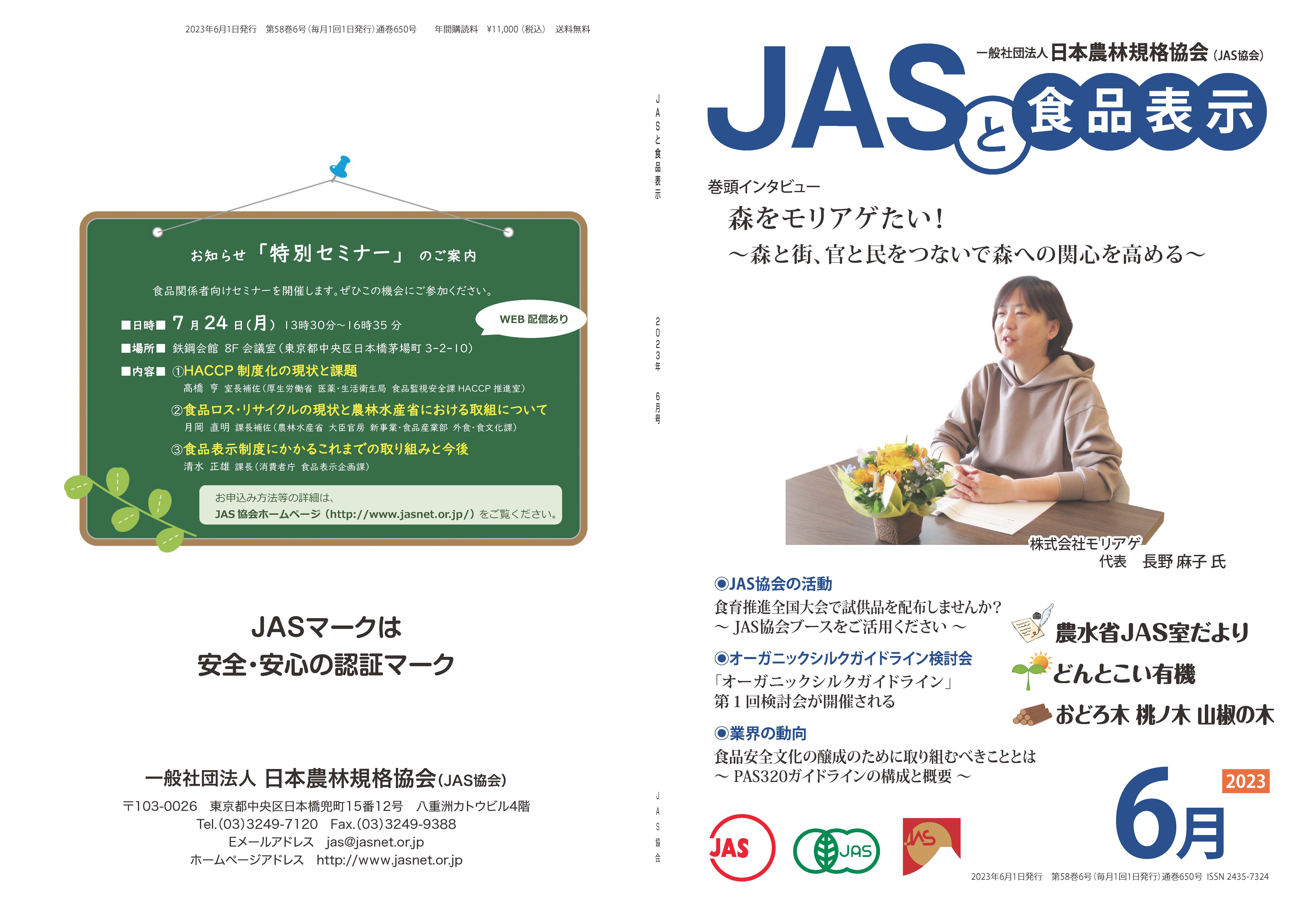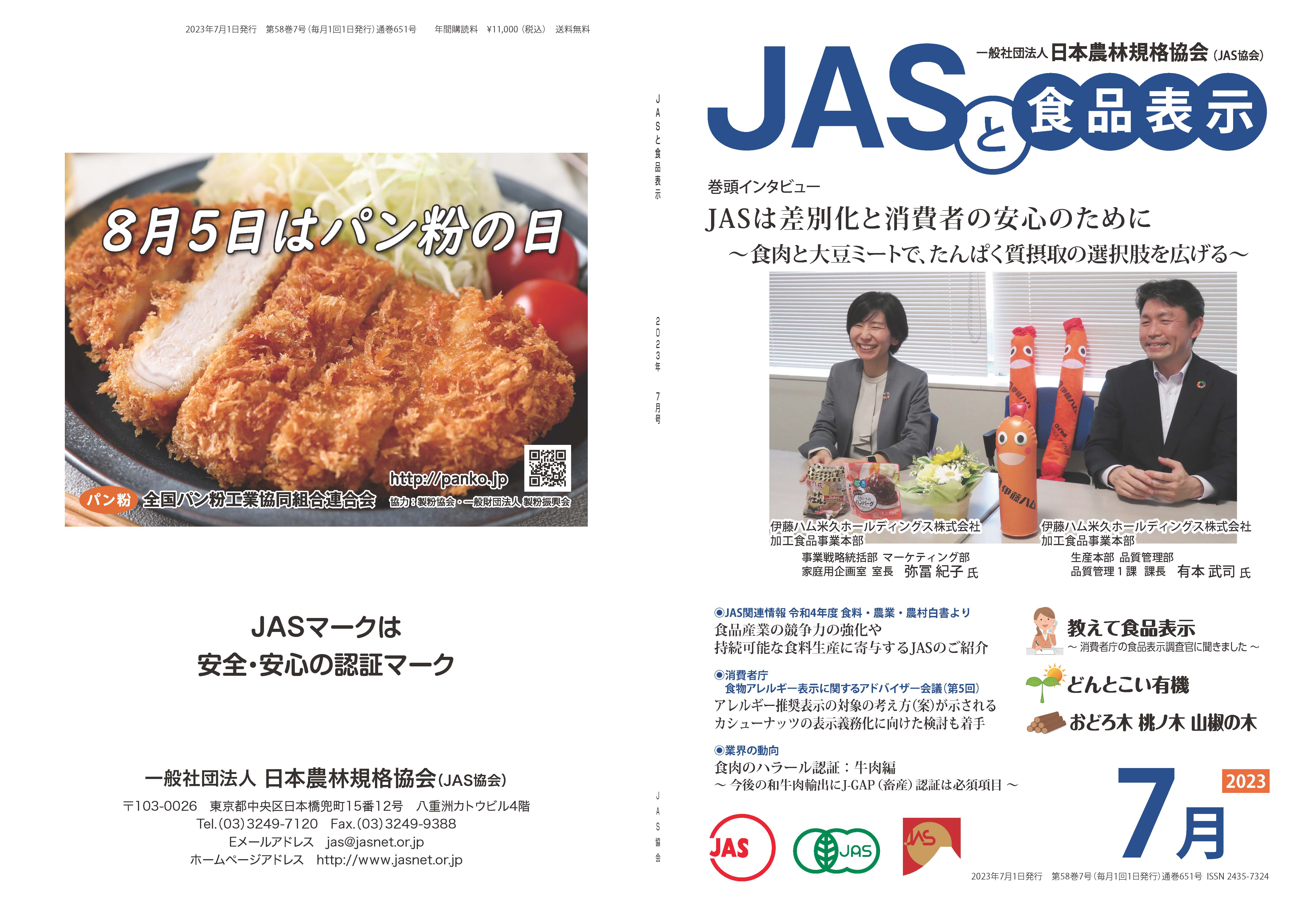 JASや食品表示に関するインタビューのほか、JASをめぐる最新の動向、