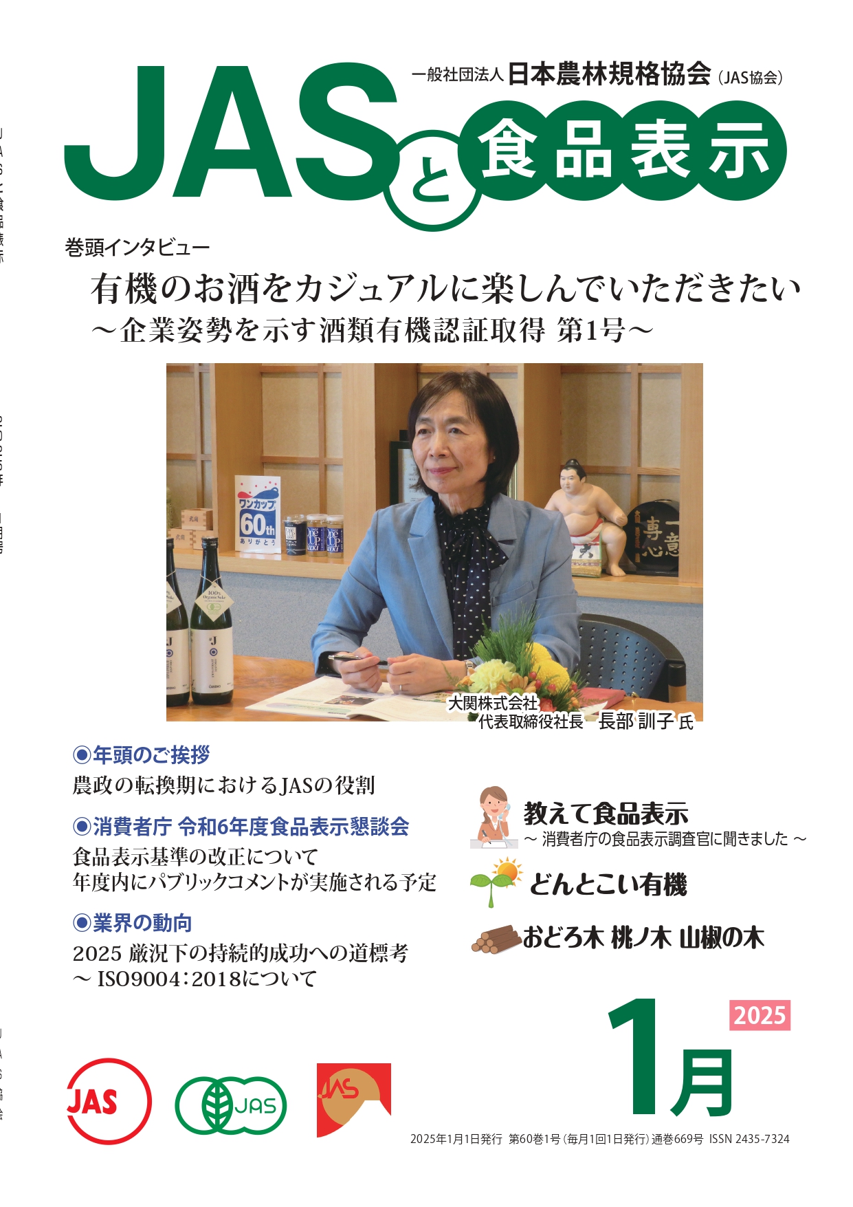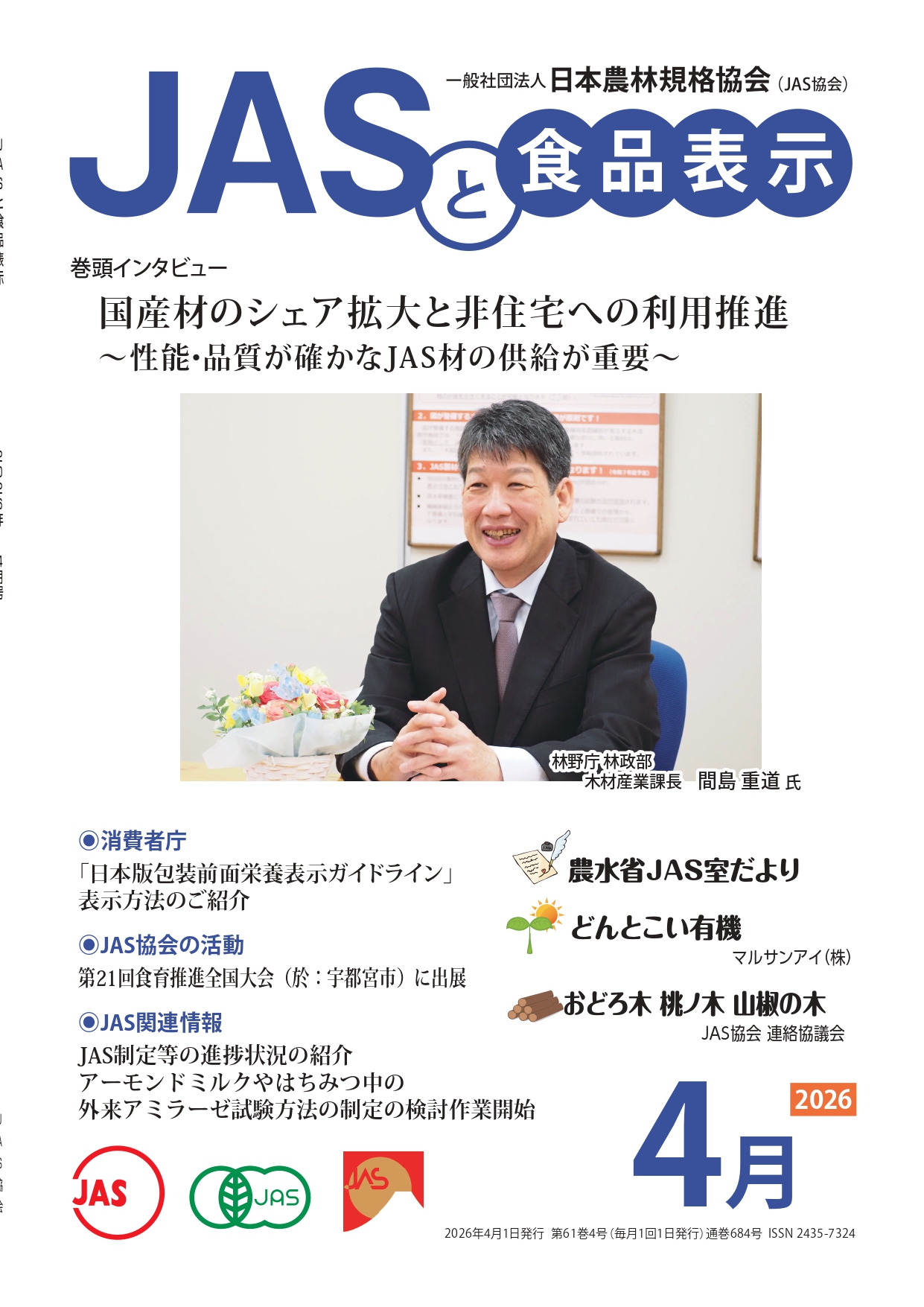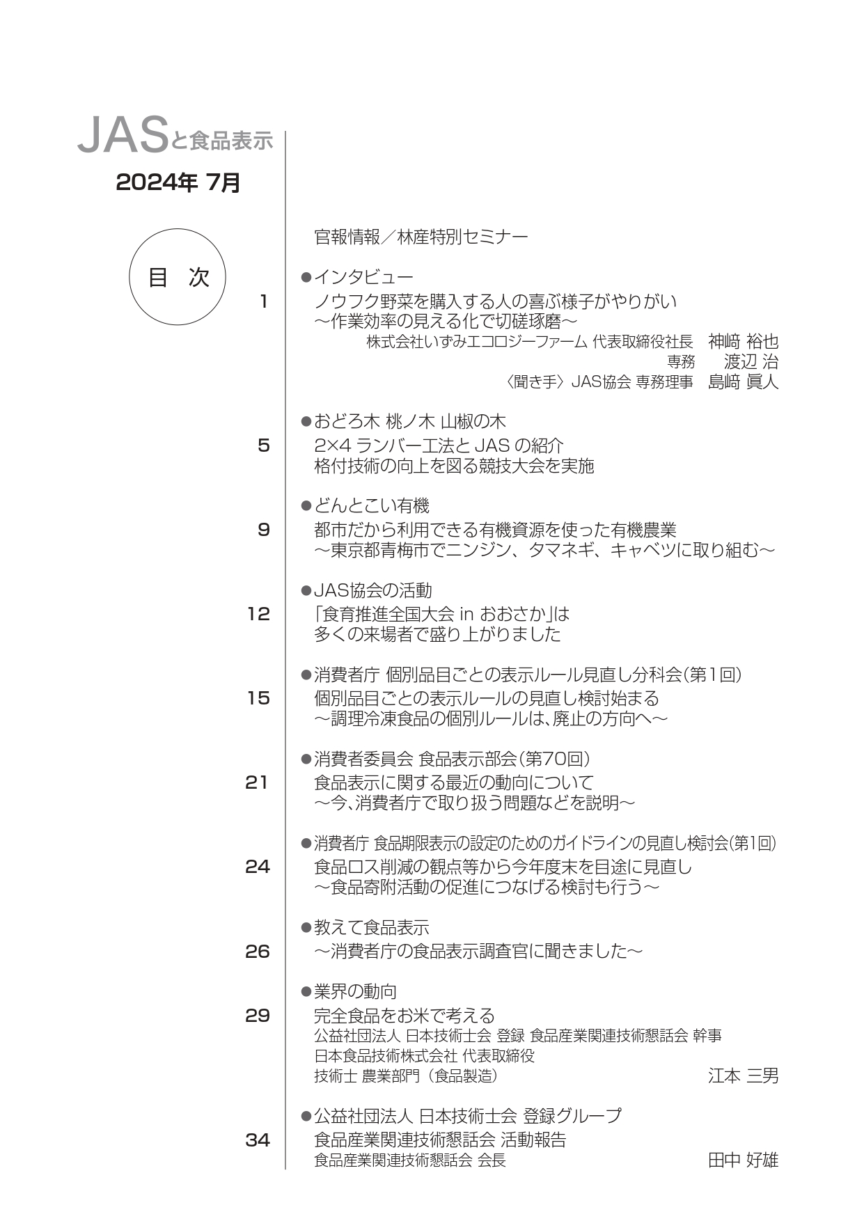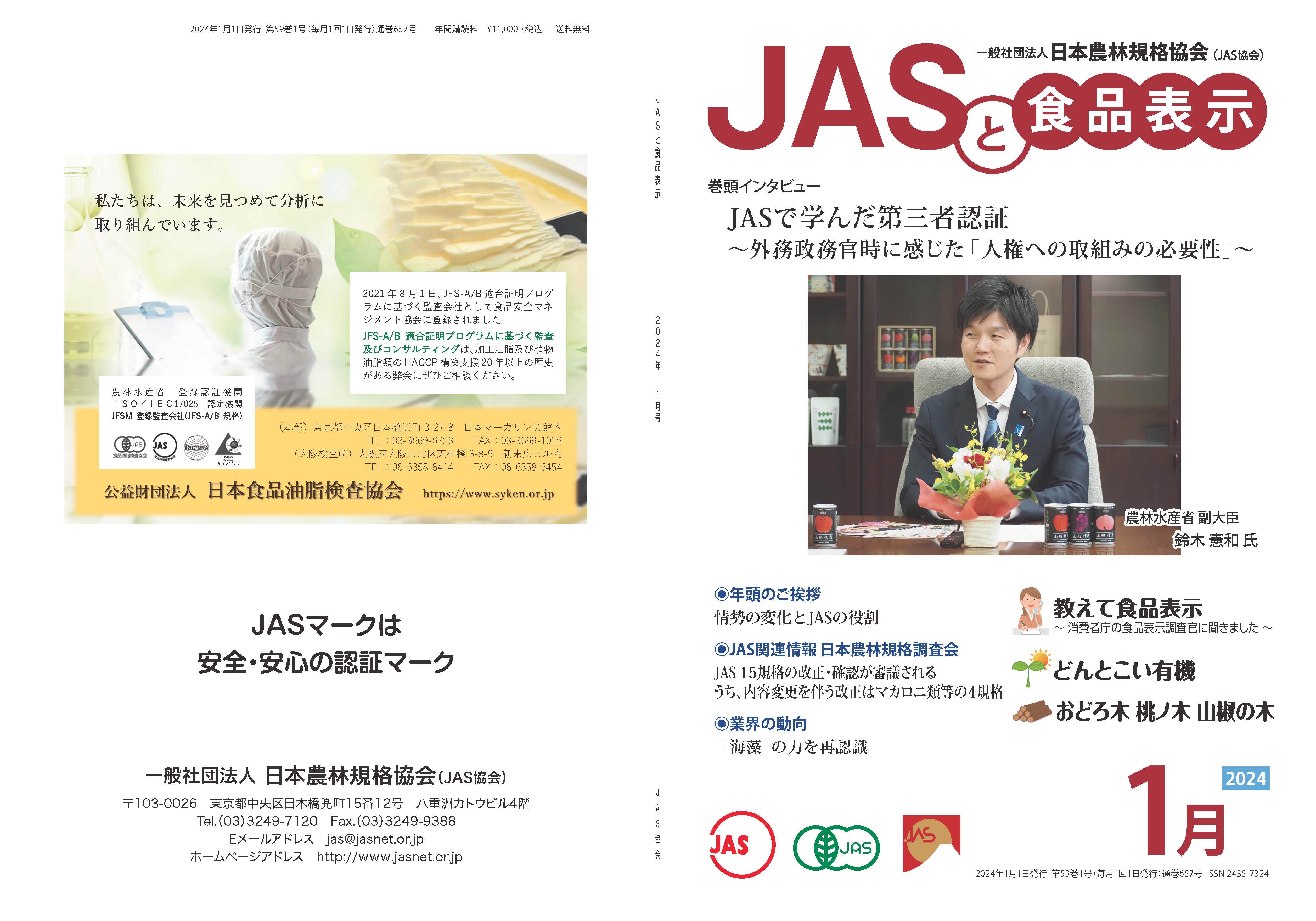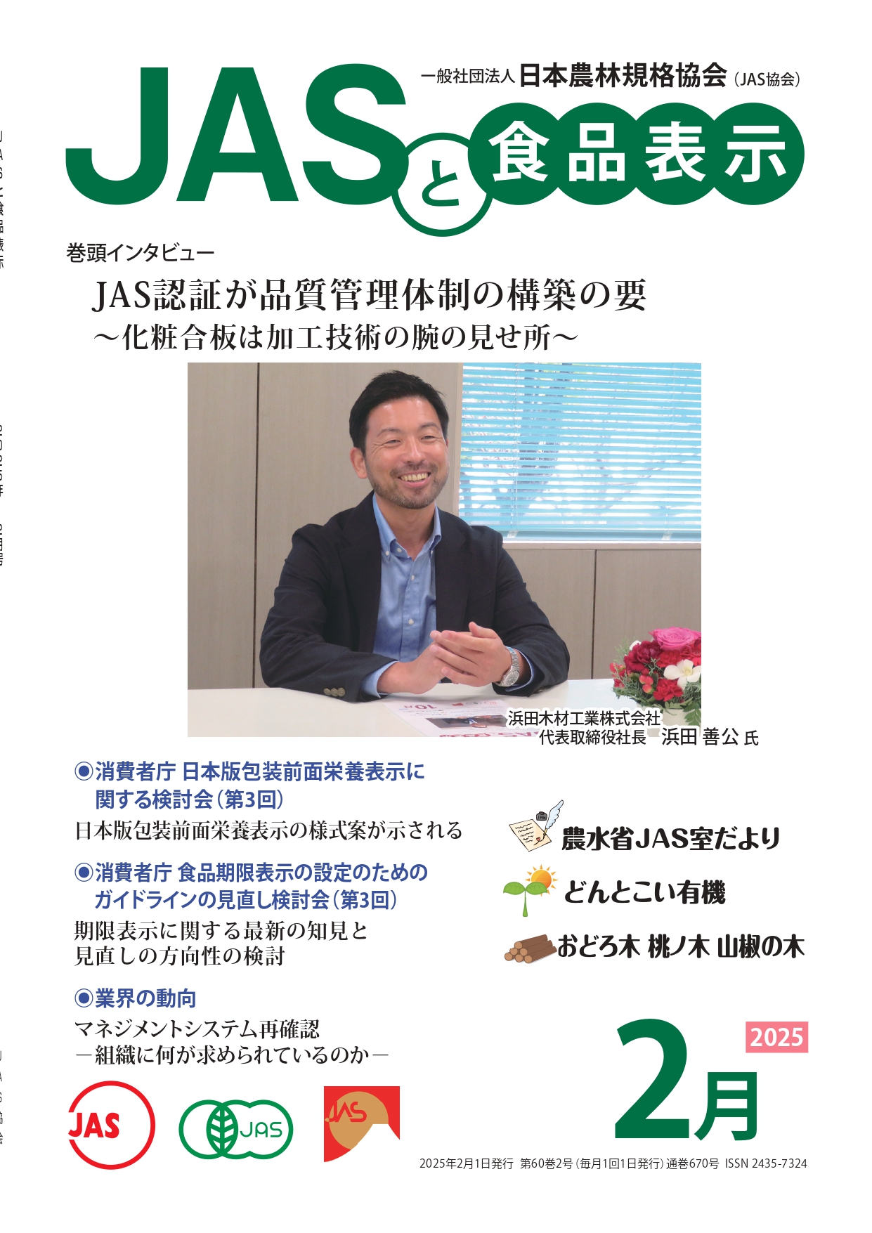 JASや食品表示に関するインタビューのほか、JASをめぐる最新の動向、