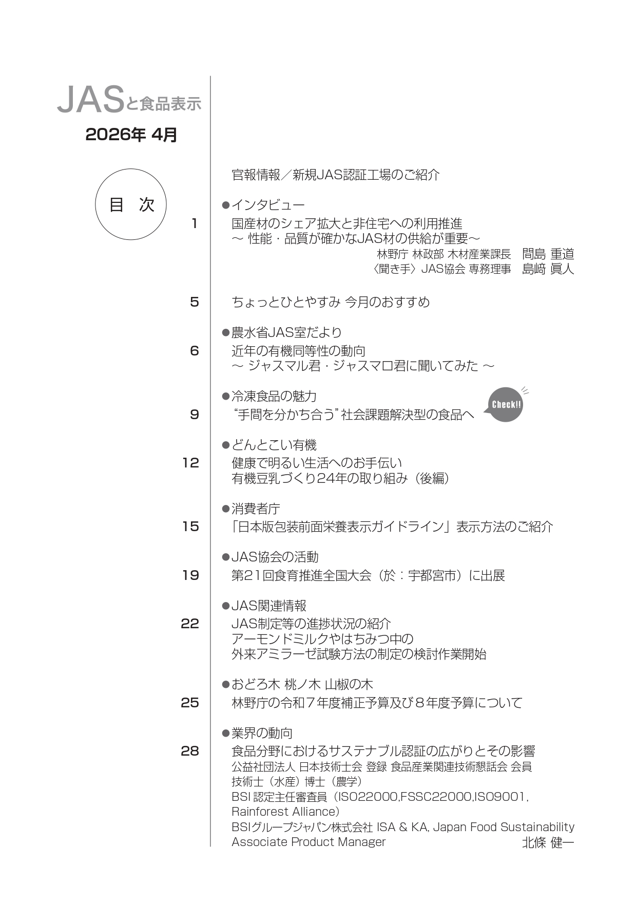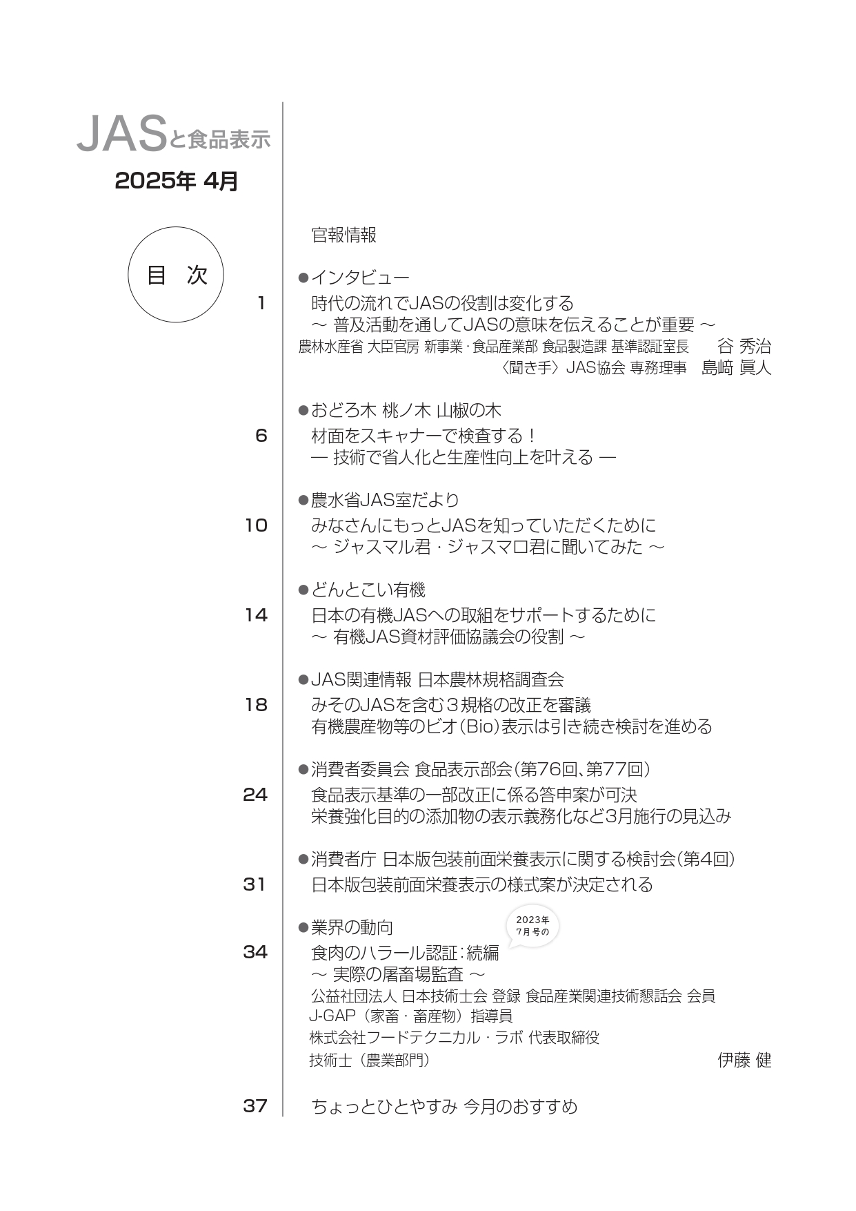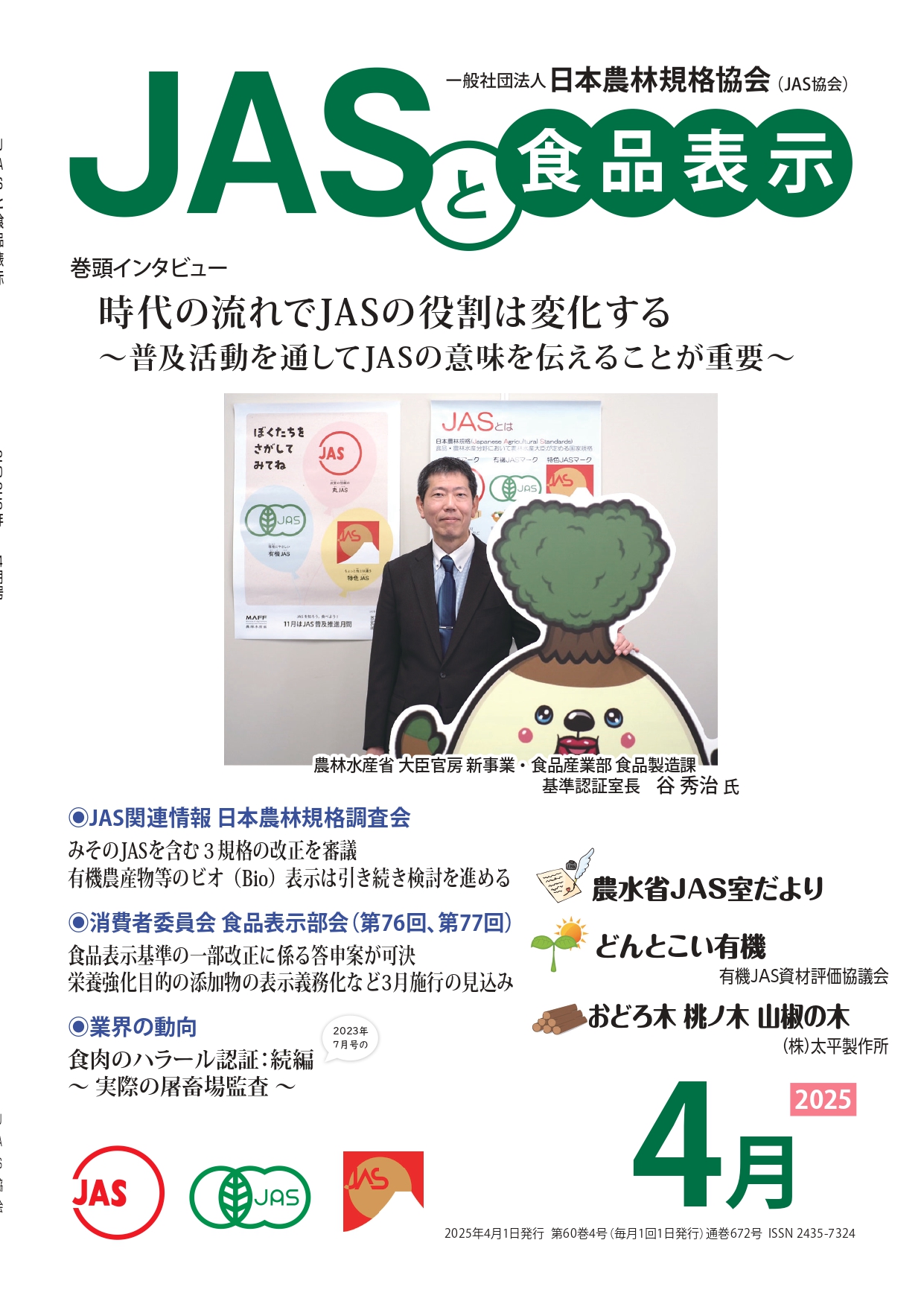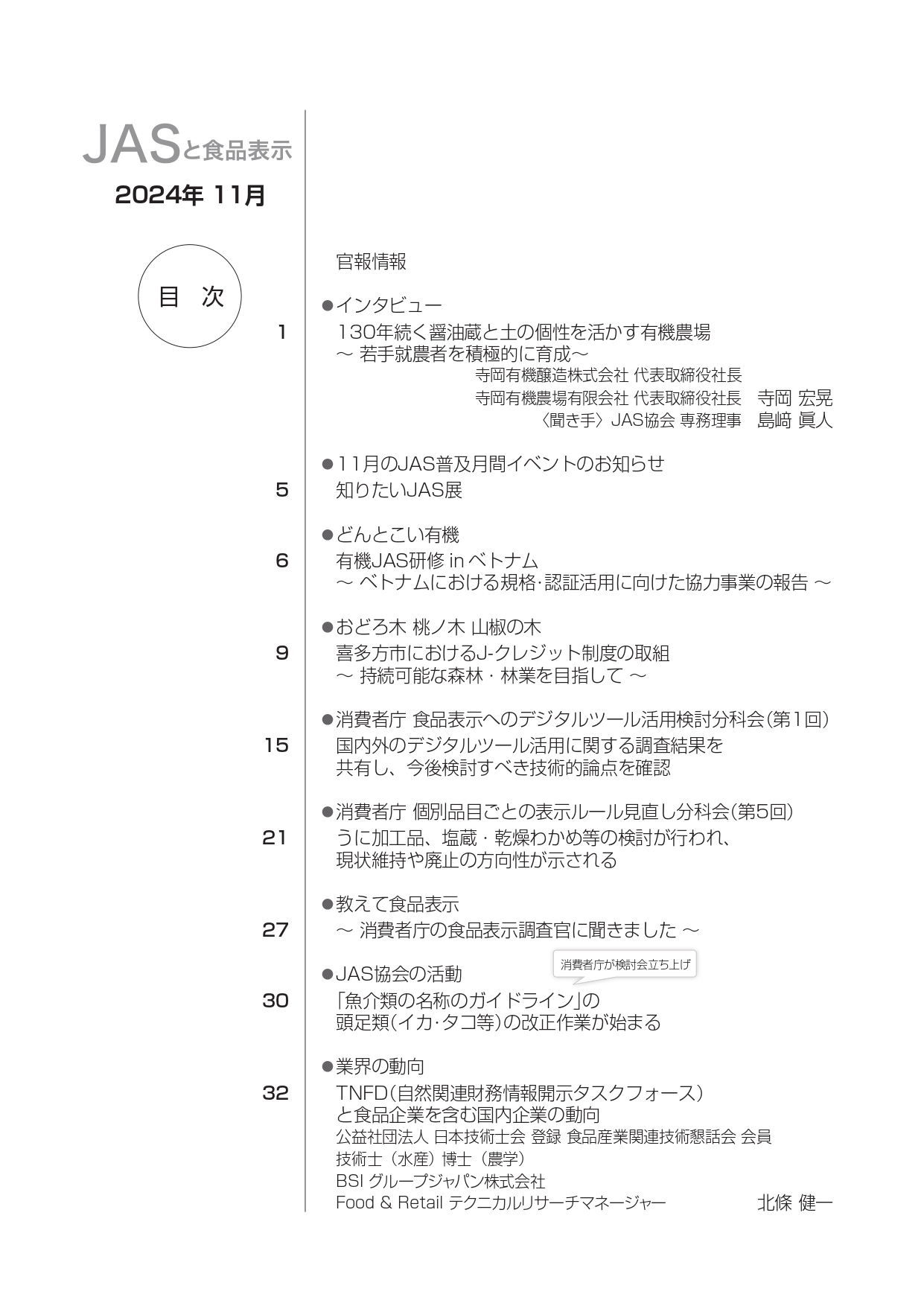 JASや食品表示に関するインタビューのほか、JASをめぐる最新の動向、