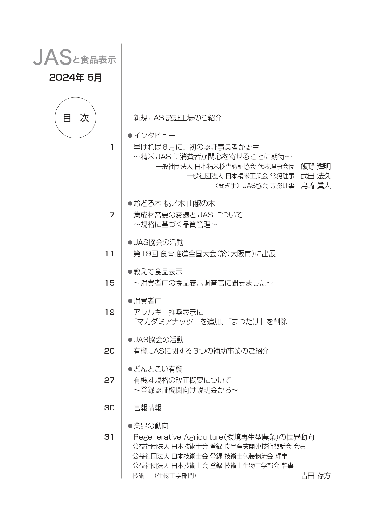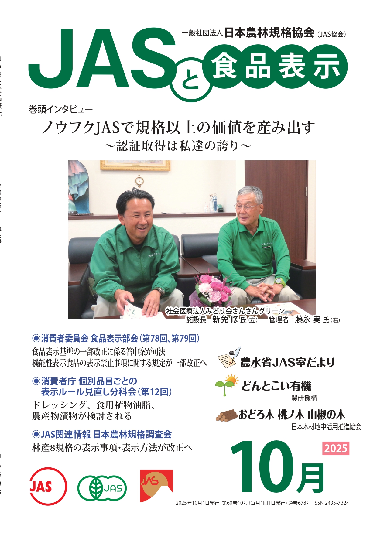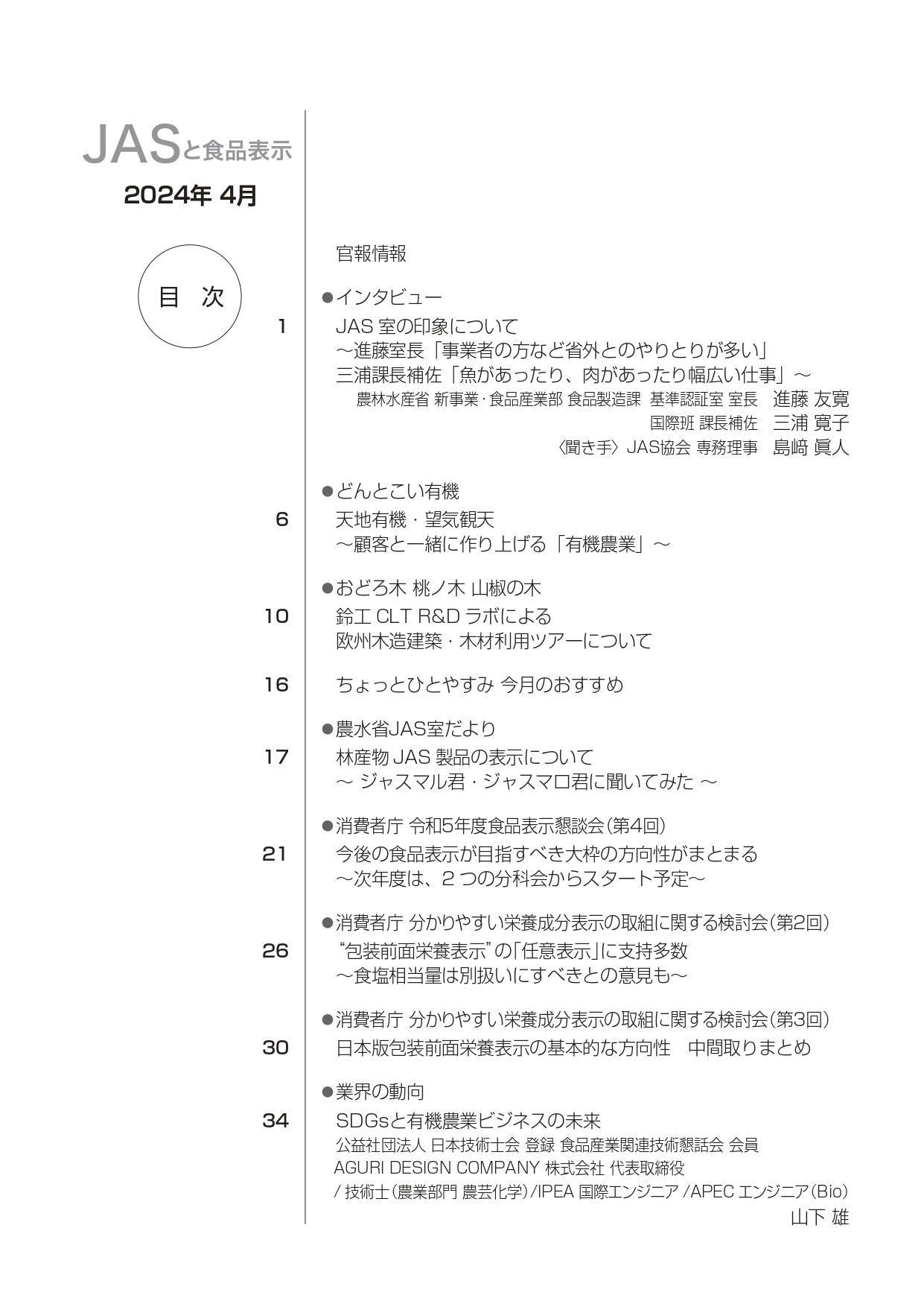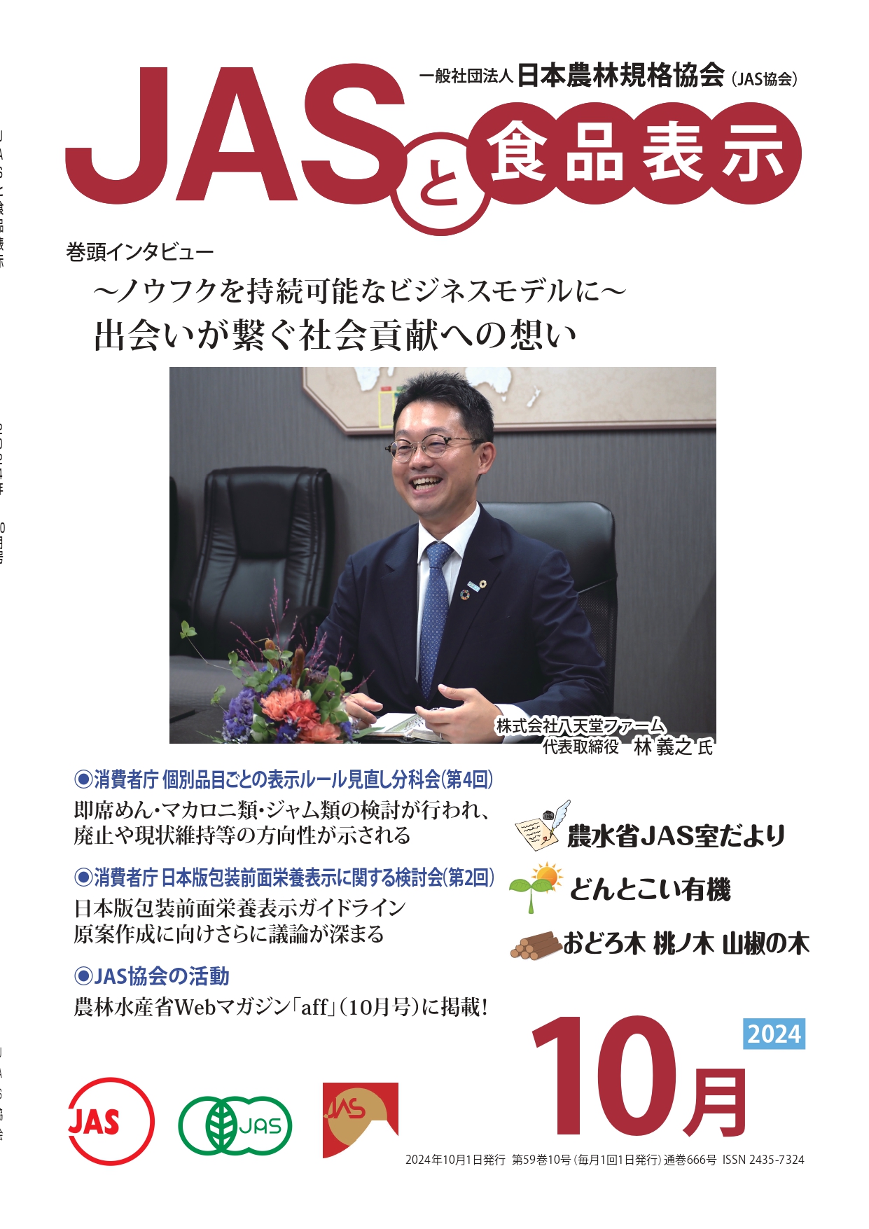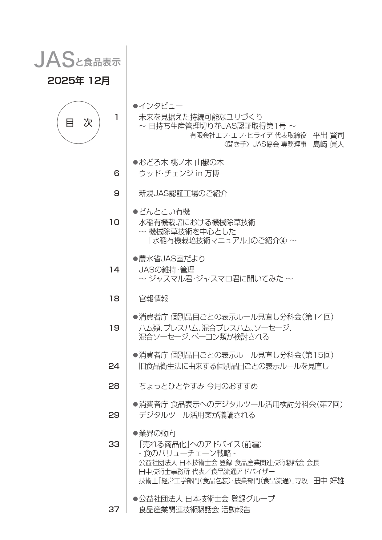 JASや食品表示に関するインタビューのほか、JASをめぐる最新の動向、