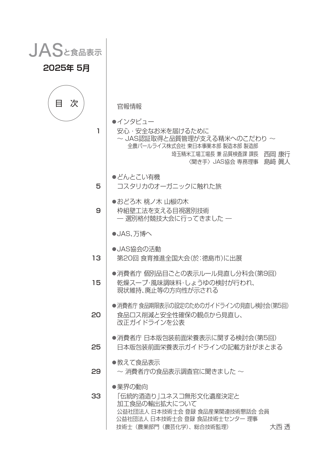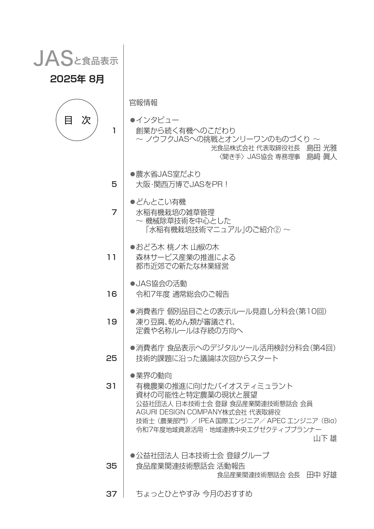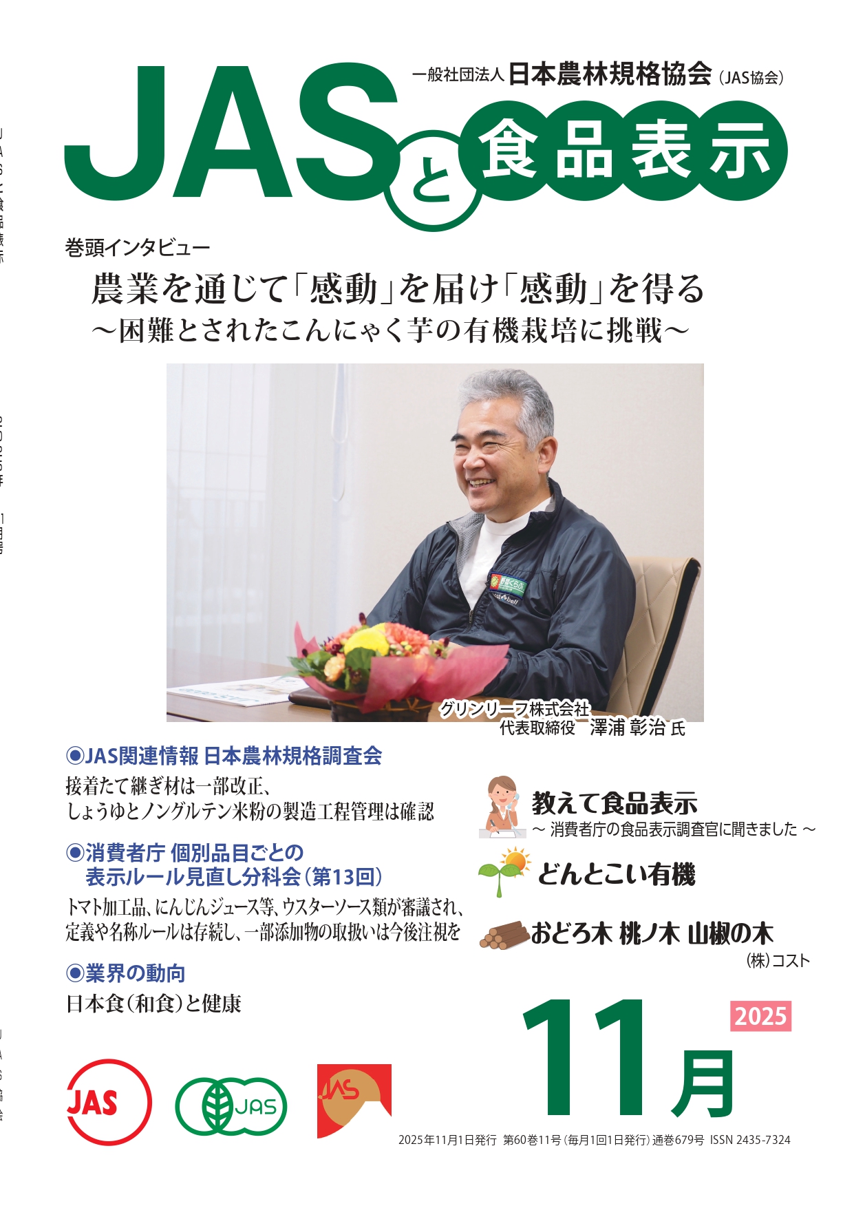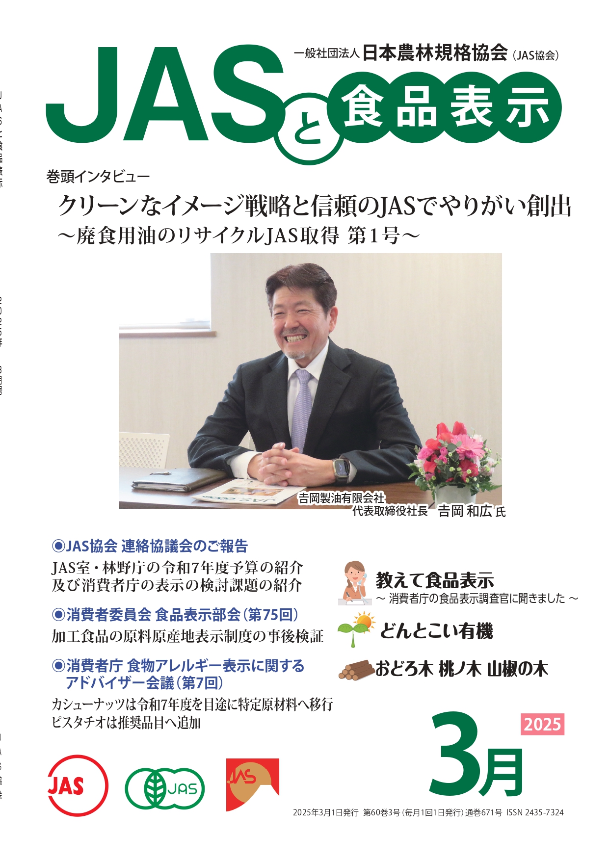 JASや食品表示に関するインタビューのほか、JASをめぐる最新の動向、