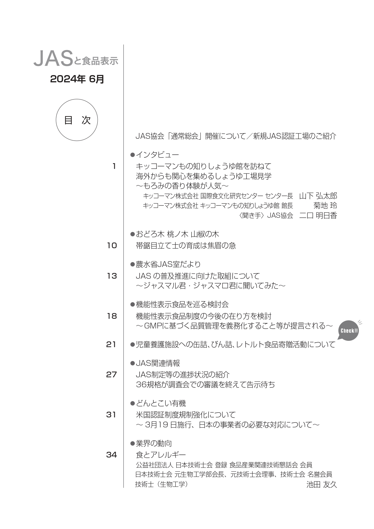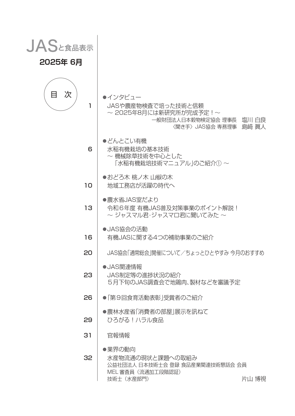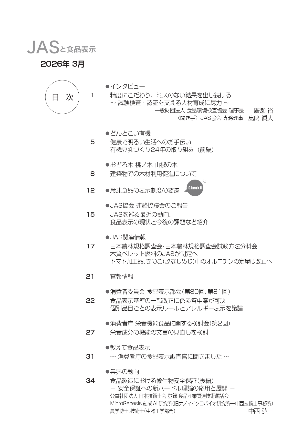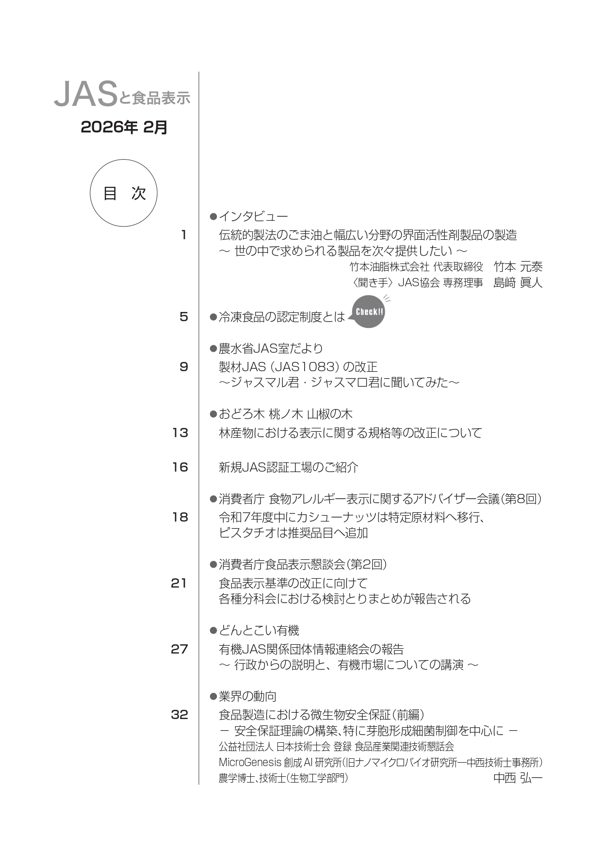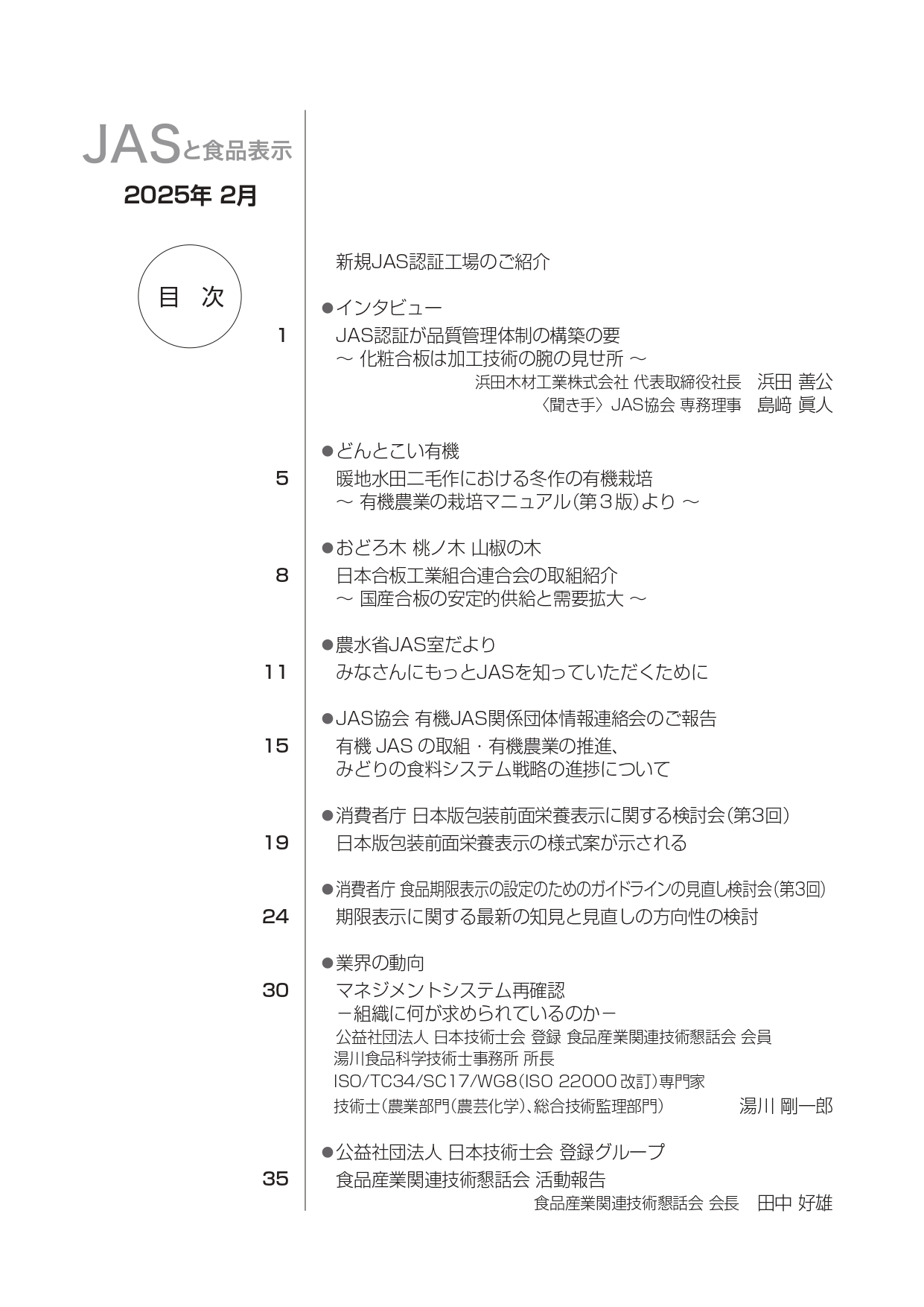 JASや食品表示に関するインタビューのほか、JASをめぐる最新の動向、