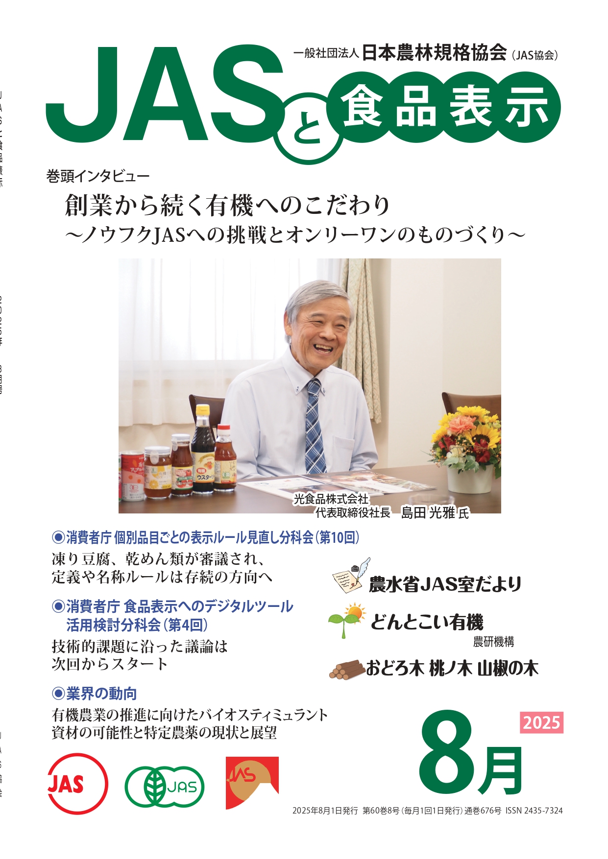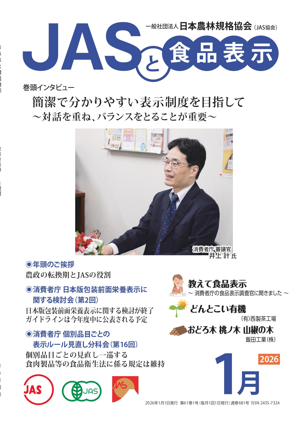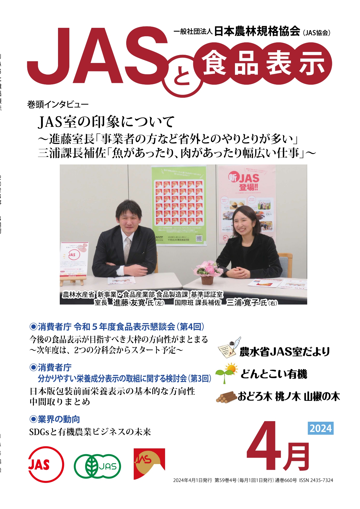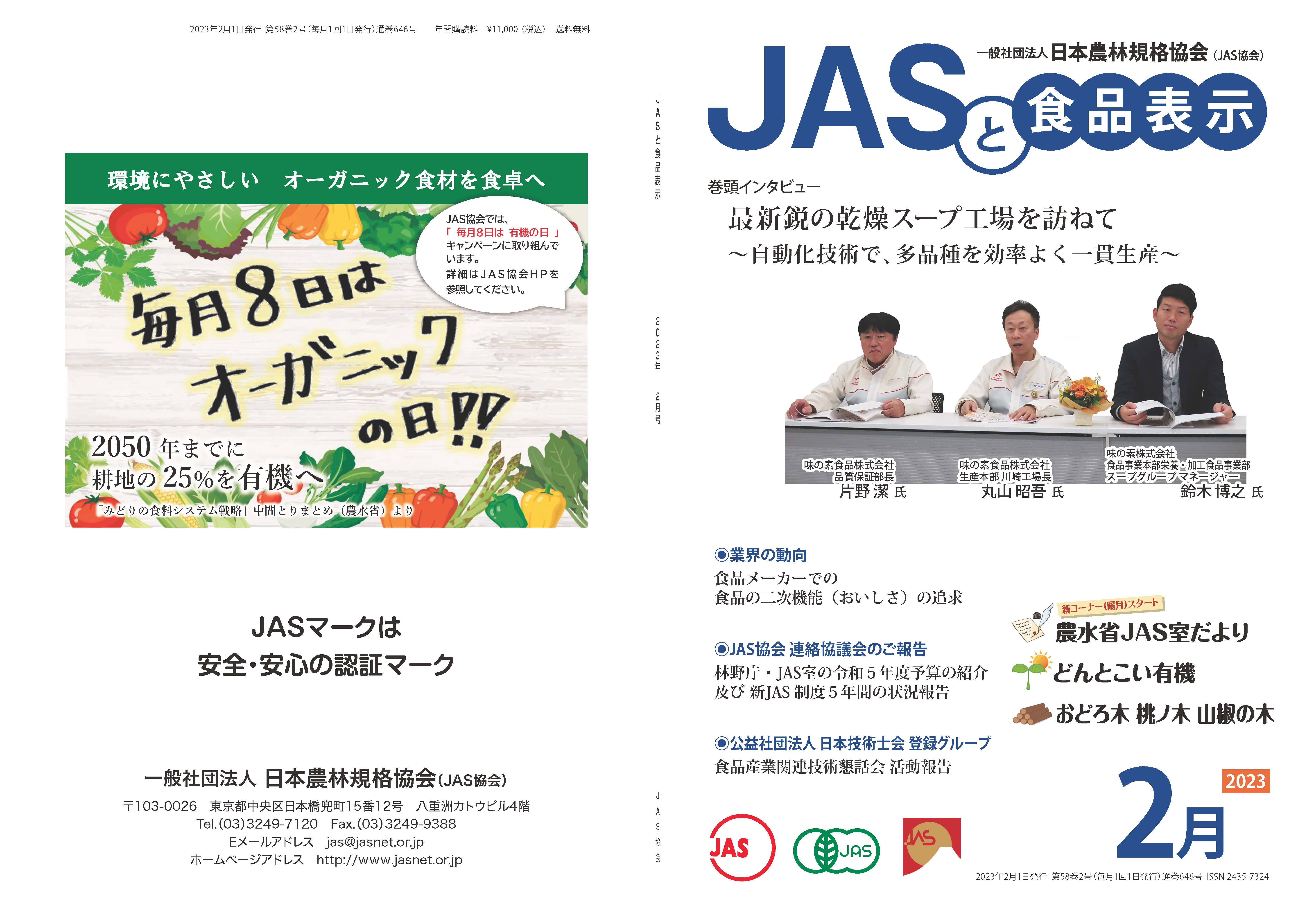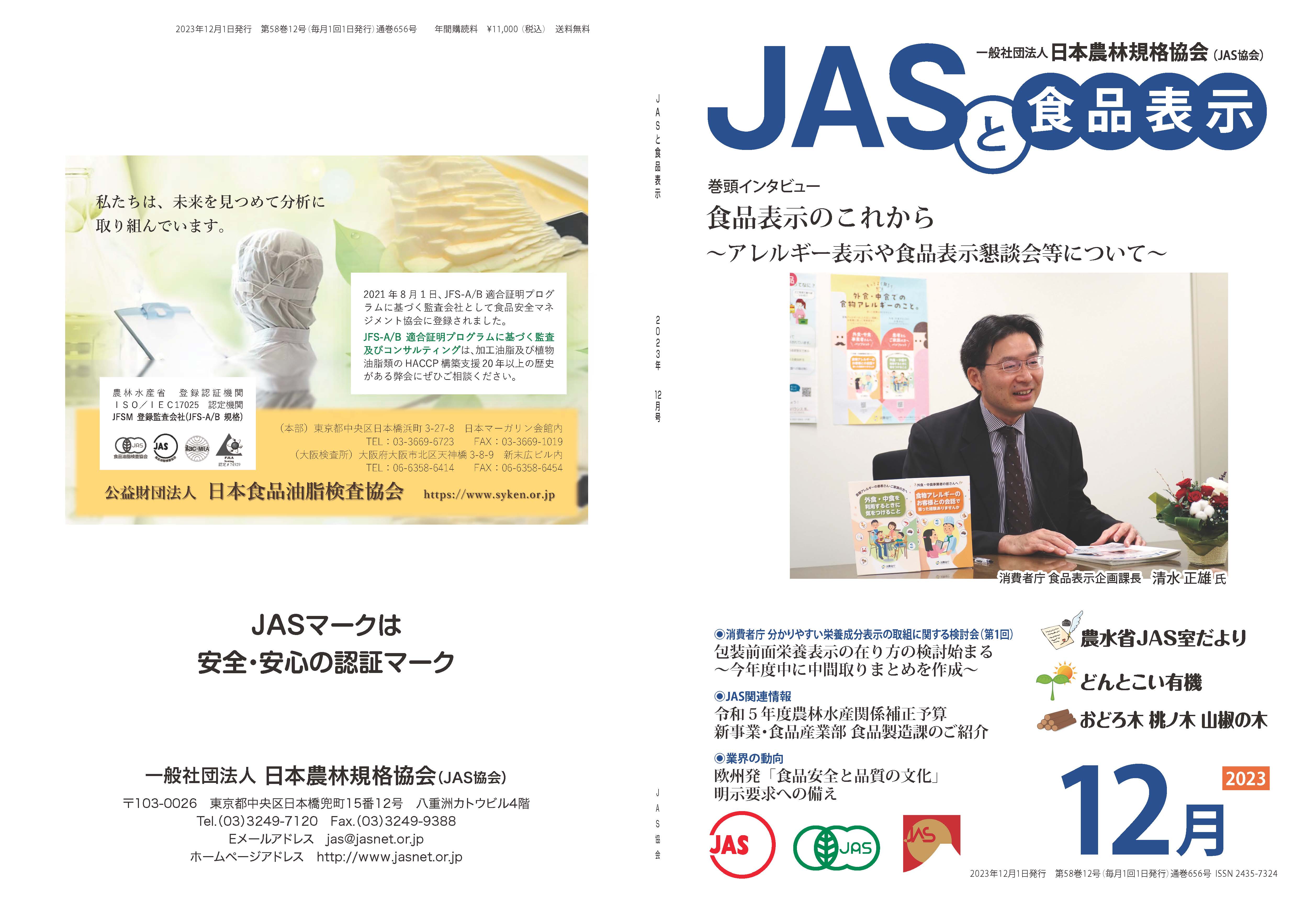 JASや食品表示に関するインタビューのほか、JASをめぐる最新の動向、