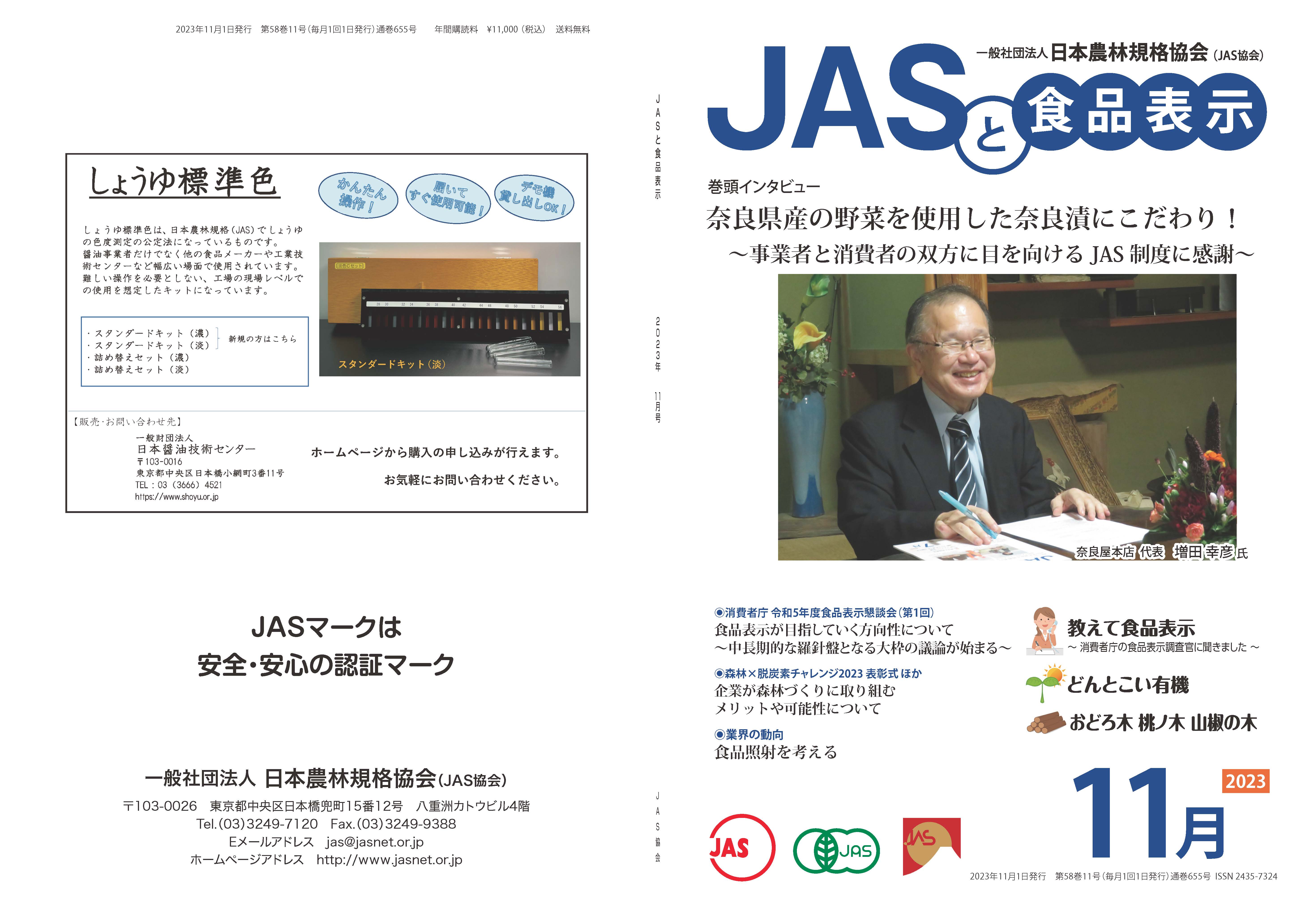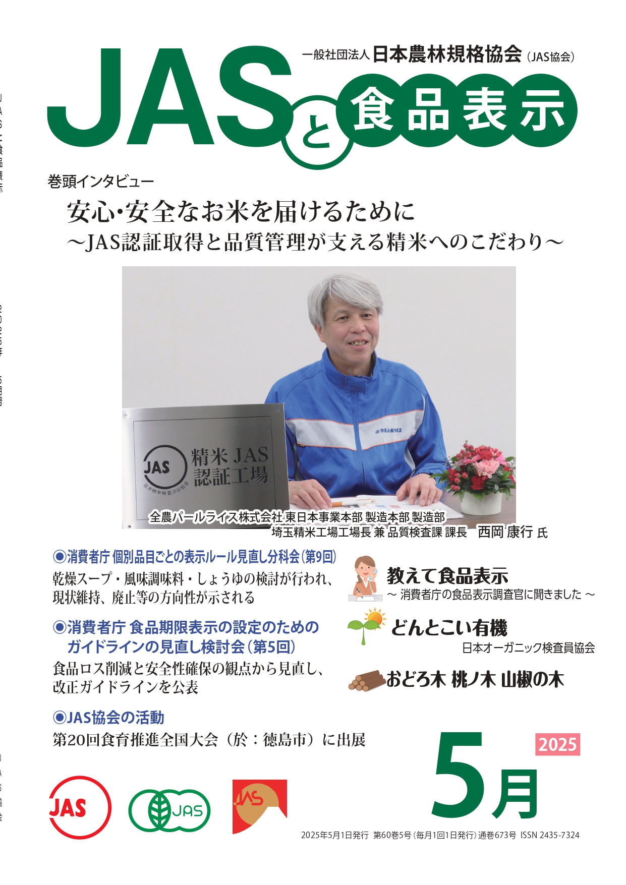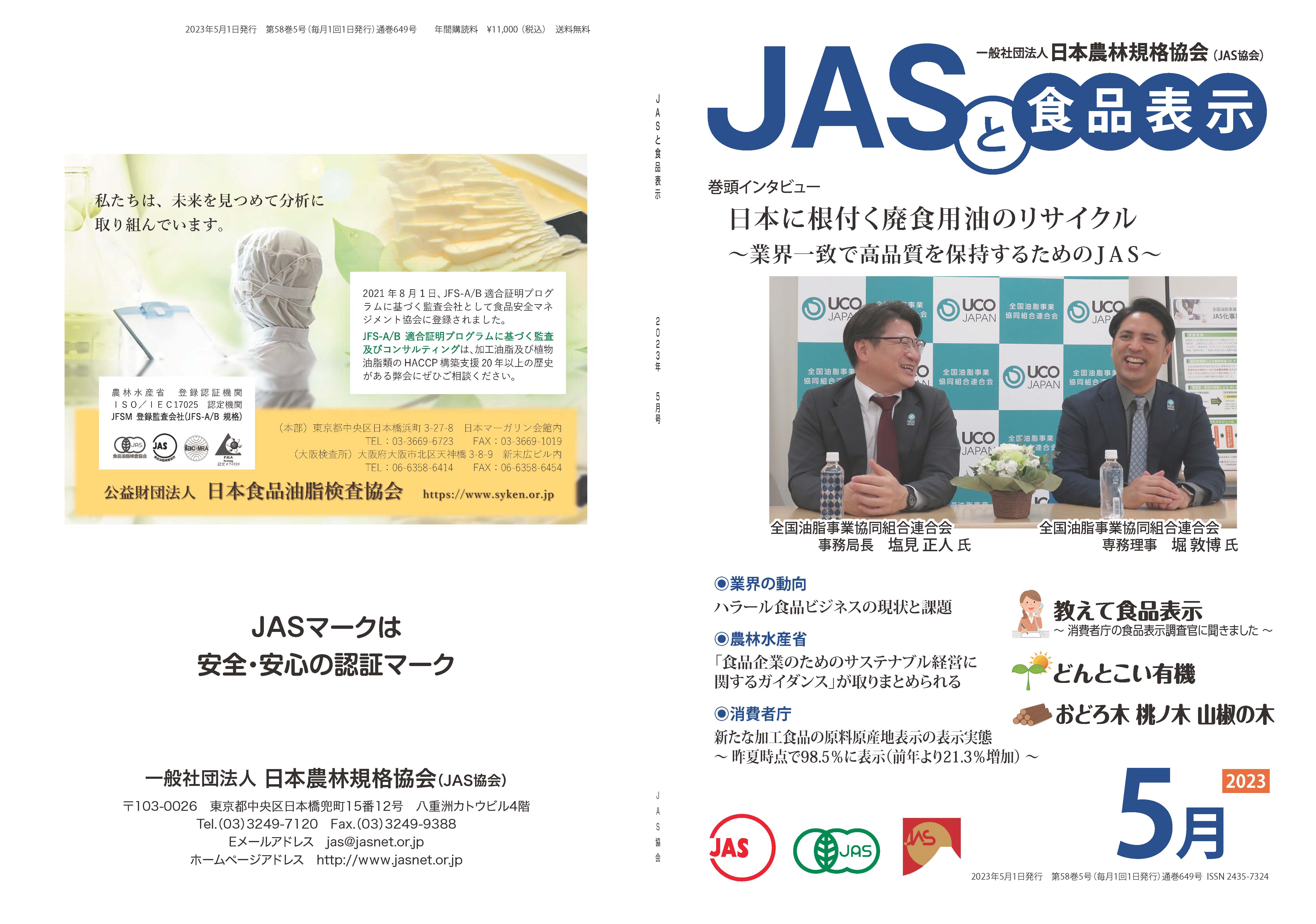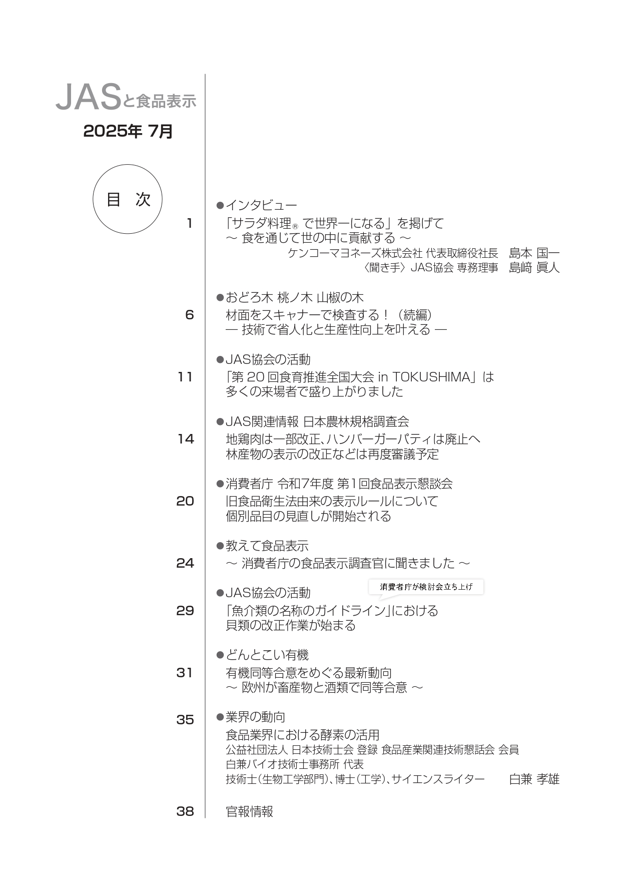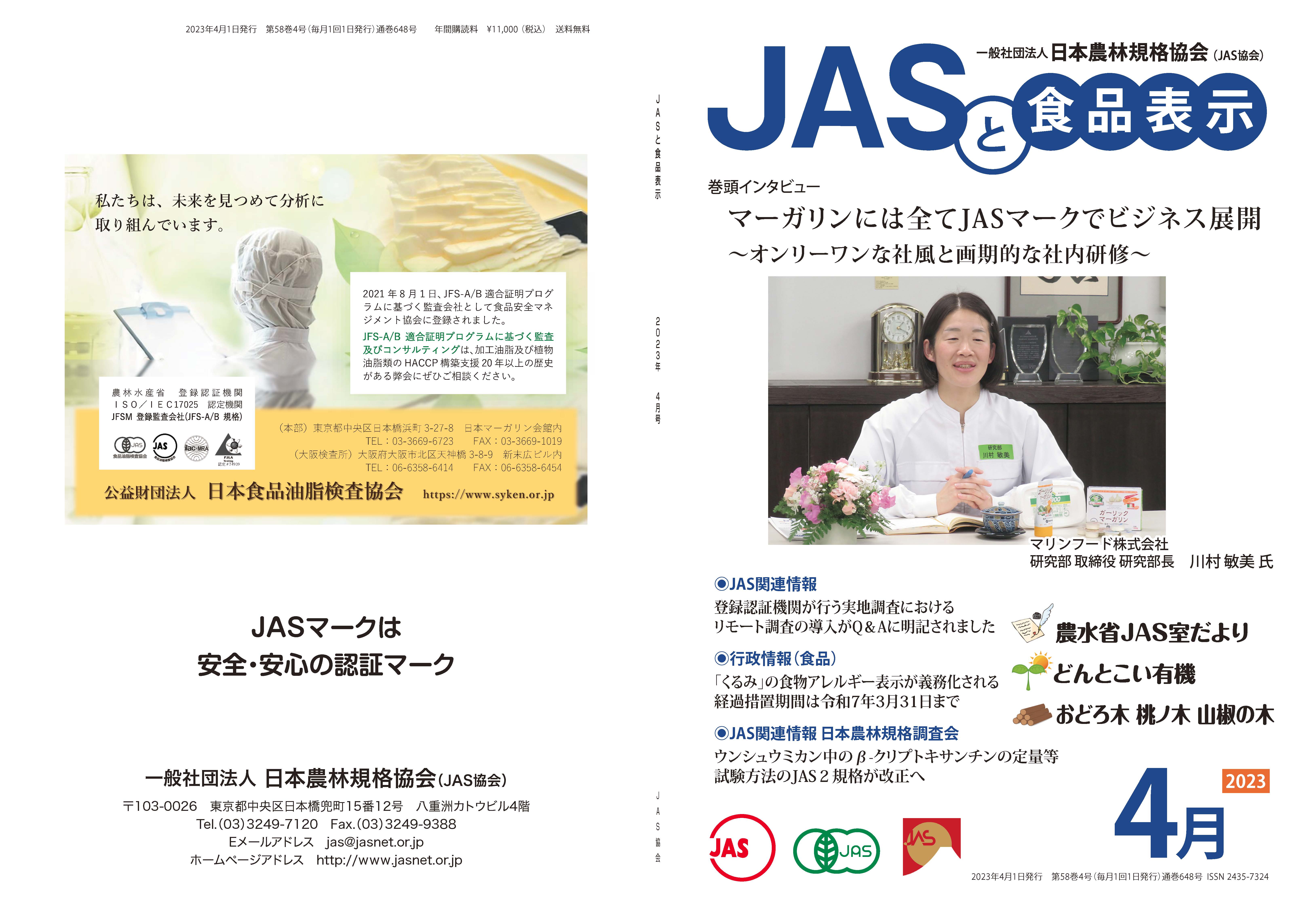 JASや食品表示に関するインタビューのほか、JASをめぐる最新の動向、