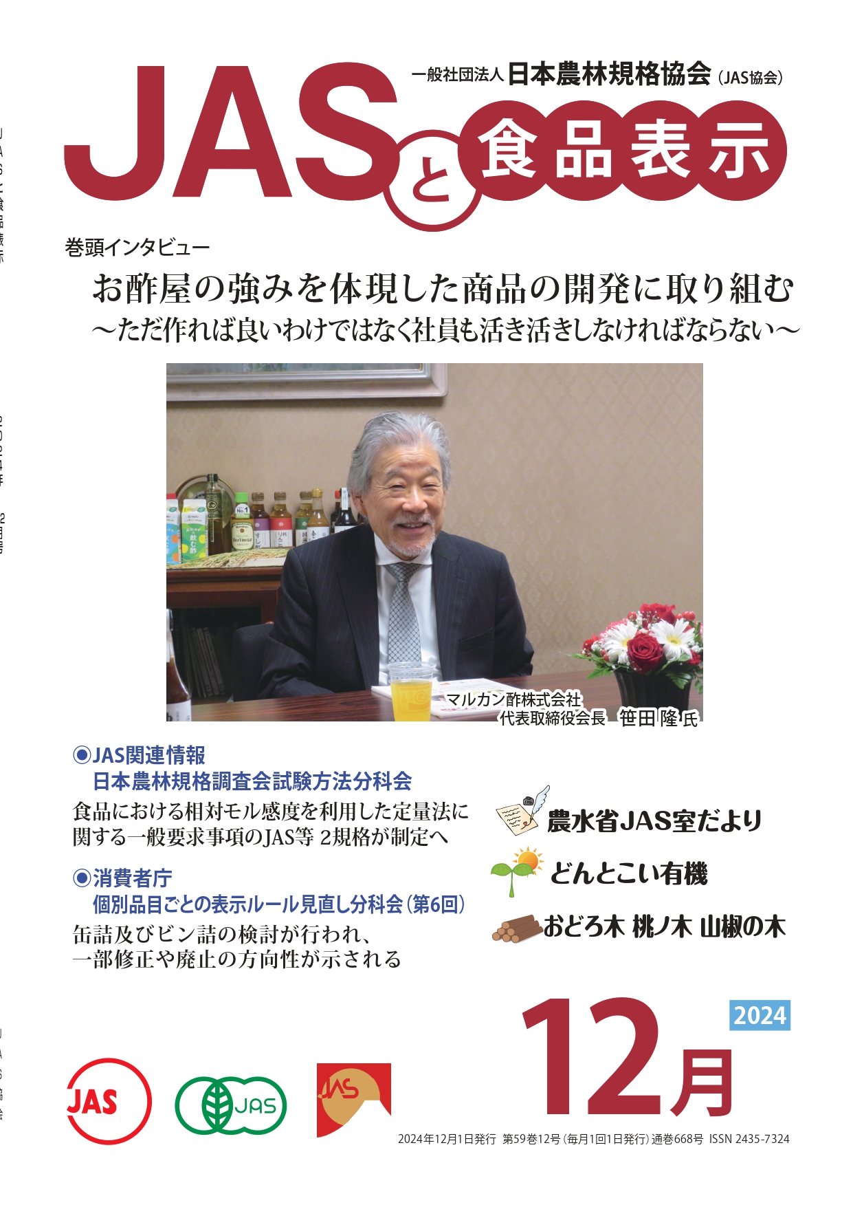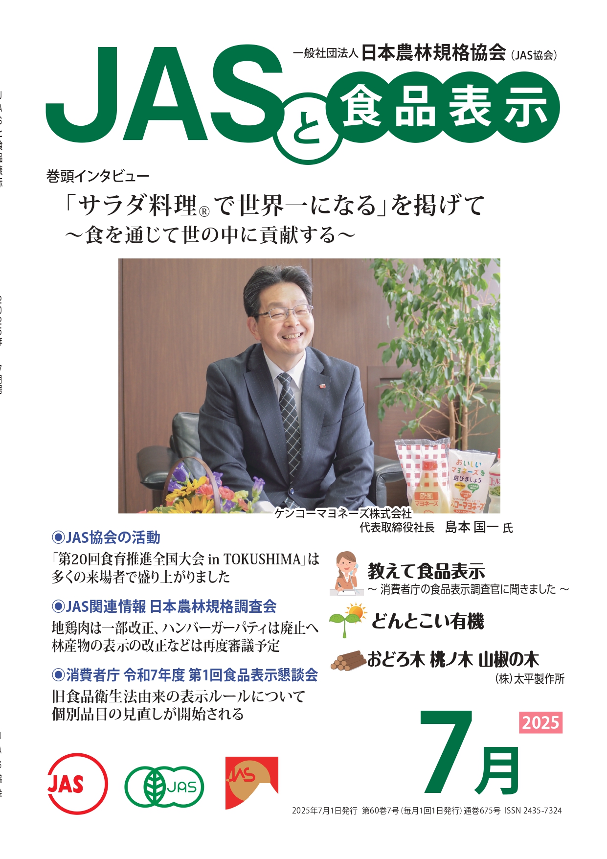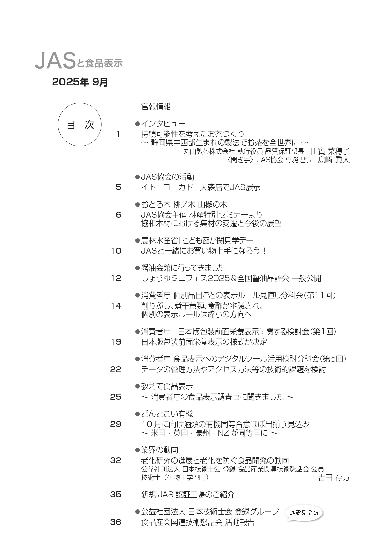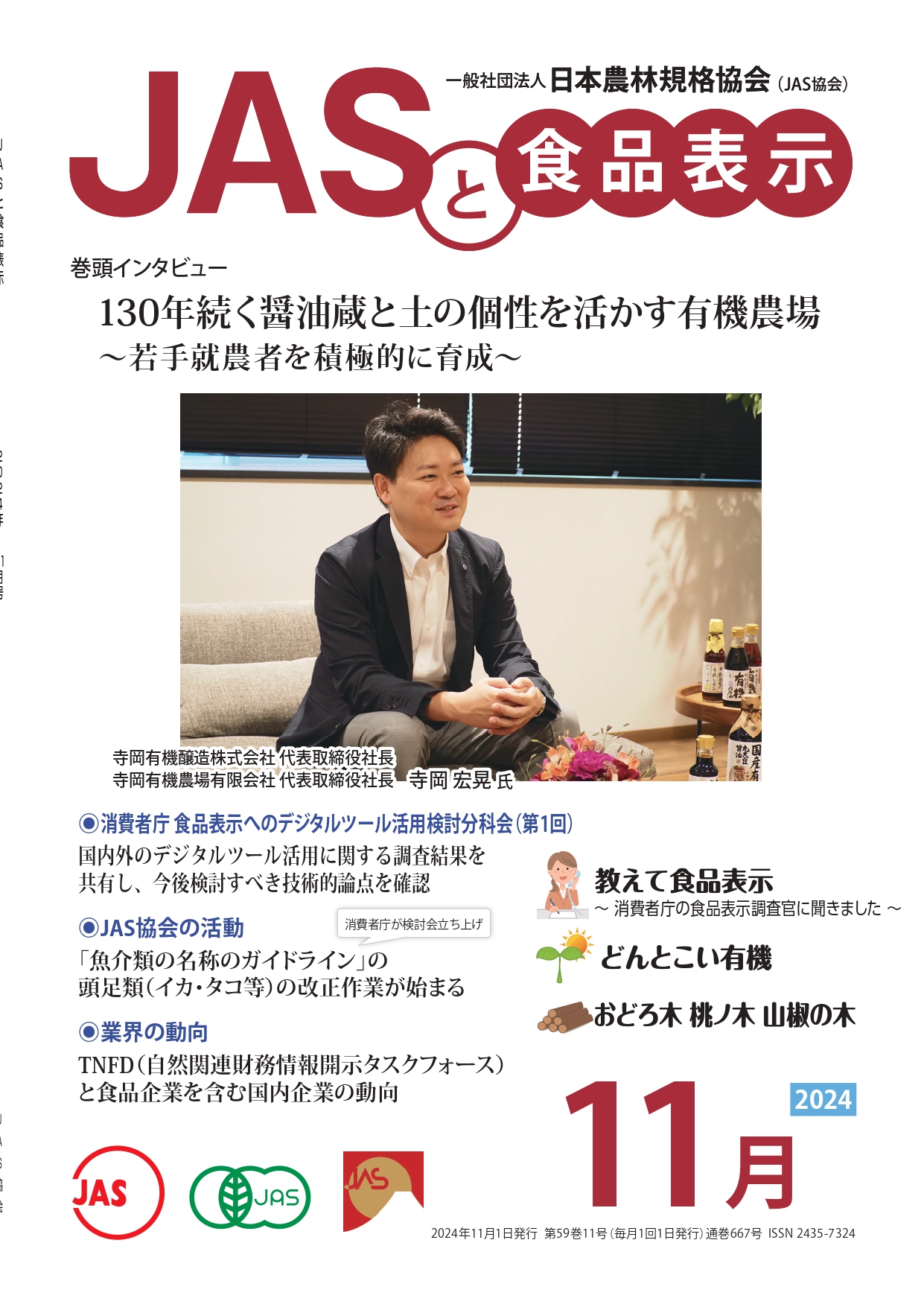 JASや食品表示に関するインタビューのほか、JASをめぐる最新の動向、