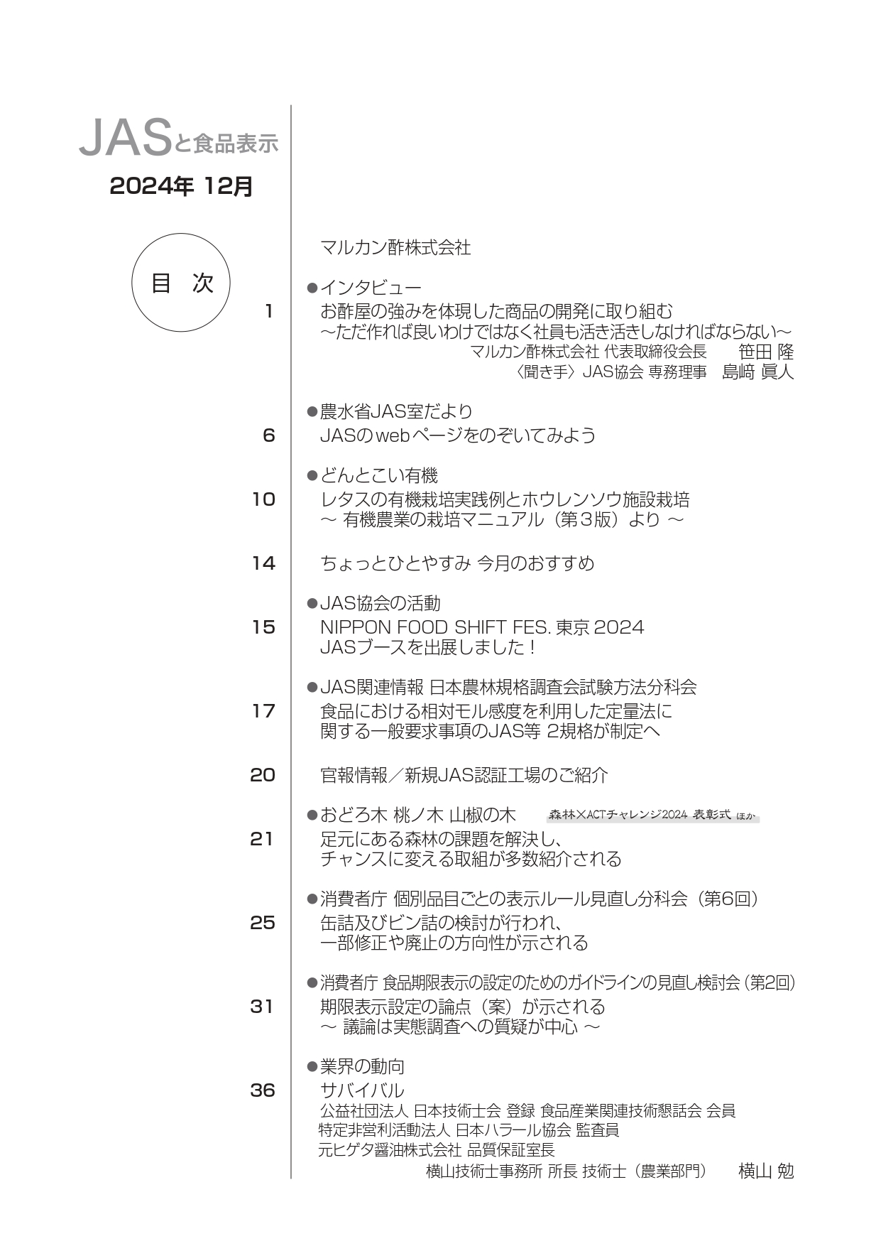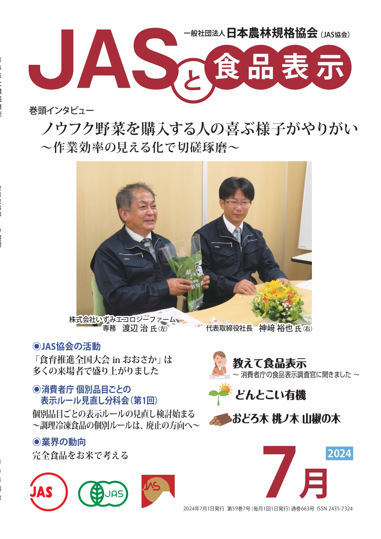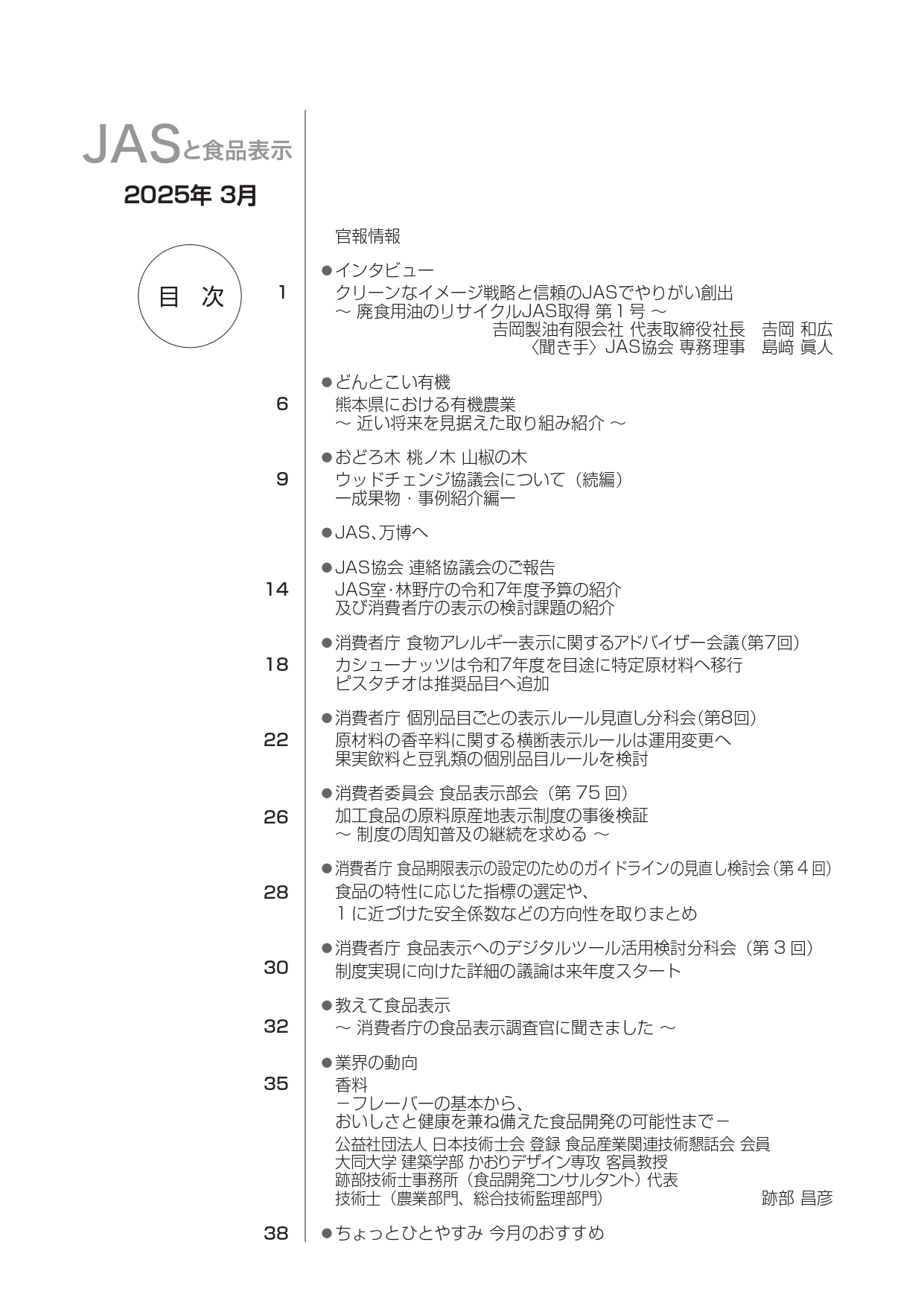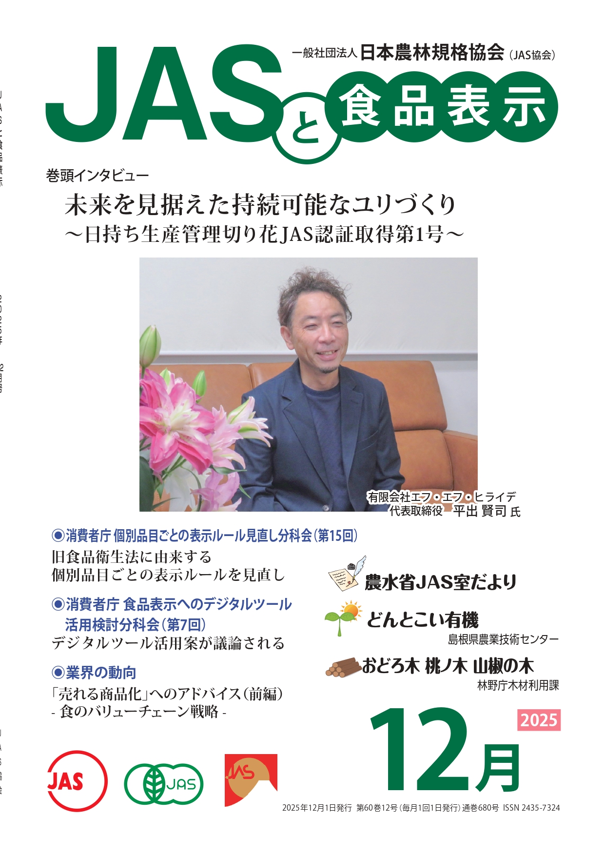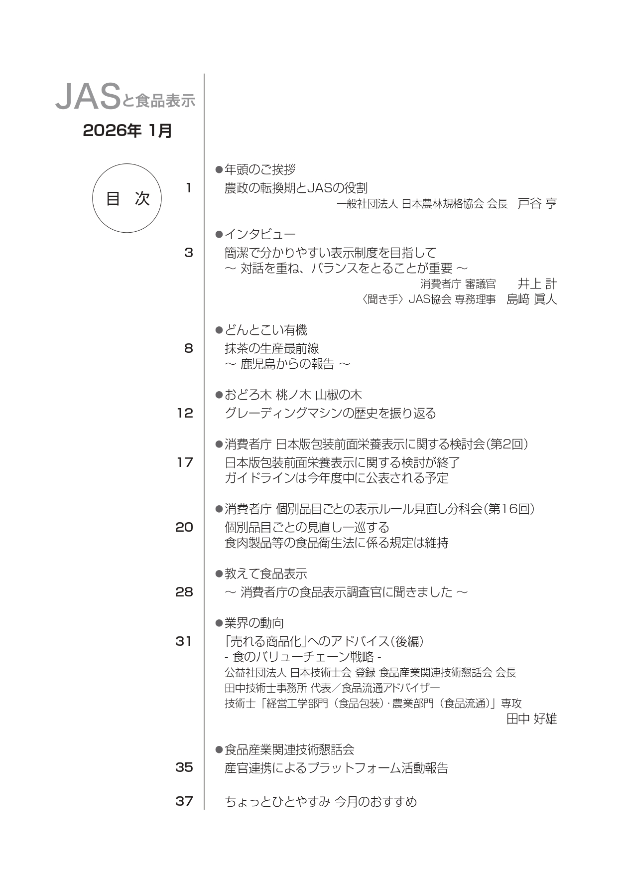JASや食品表示に関するインタビューのほか、JASをめぐる最新の動向、