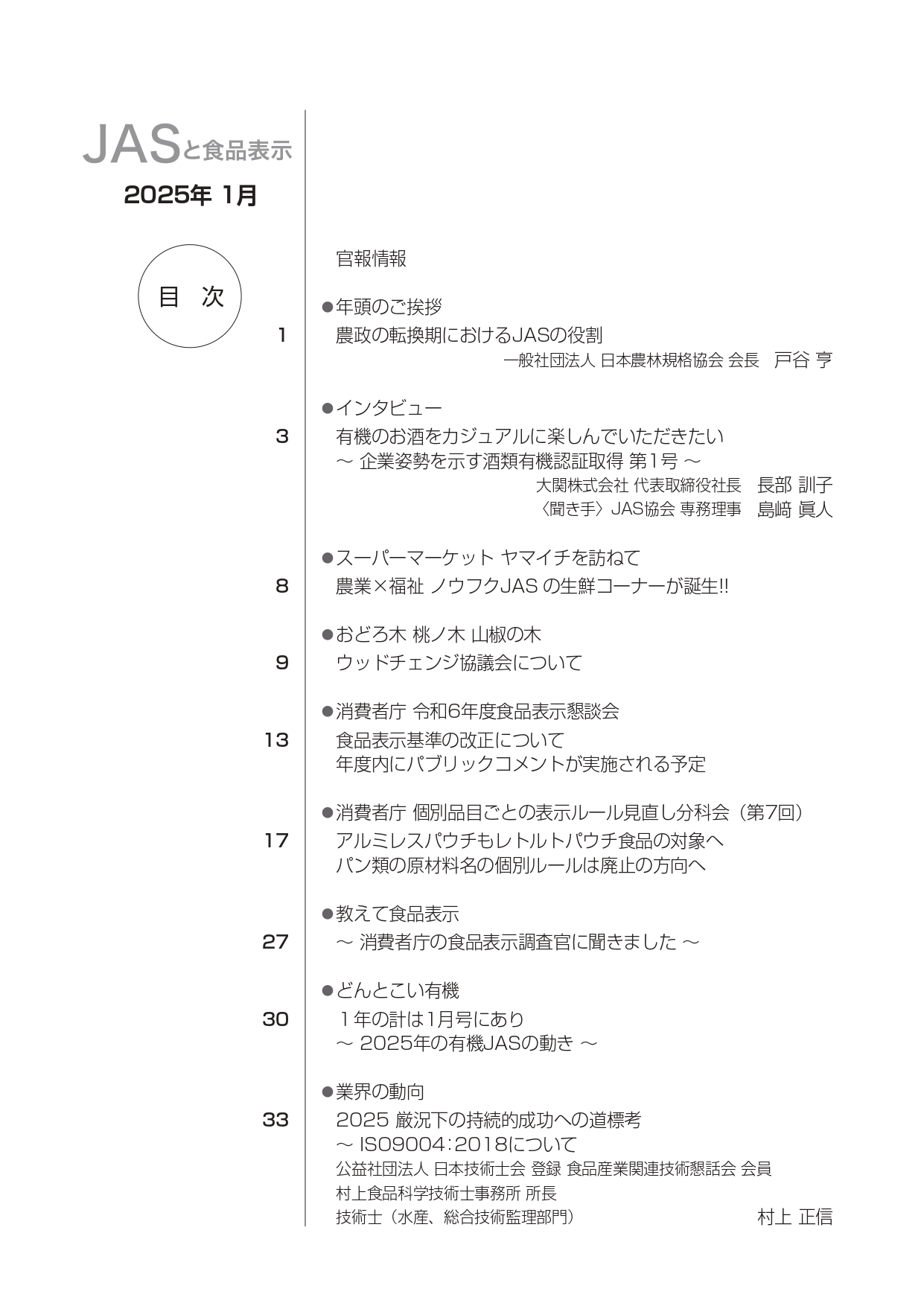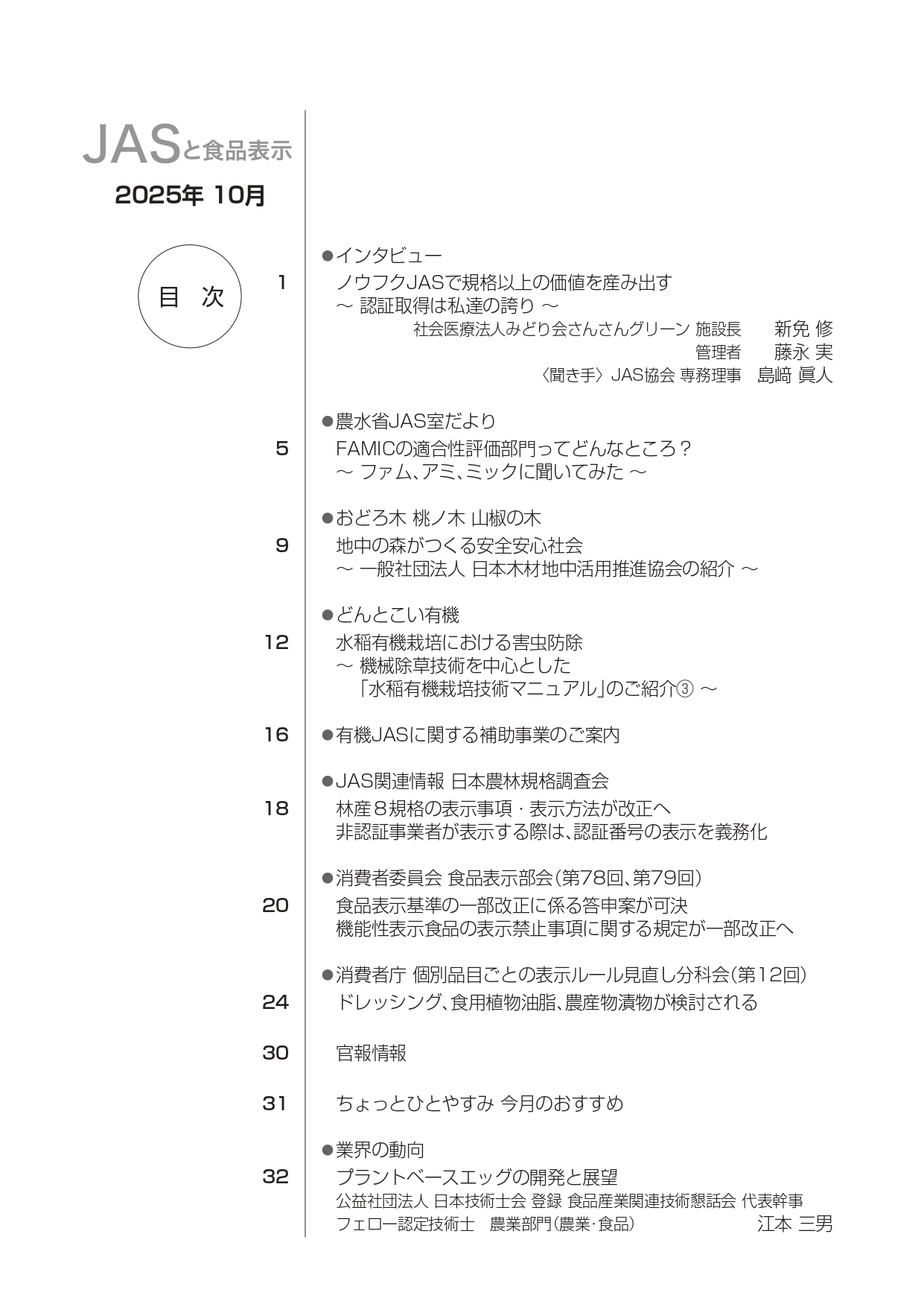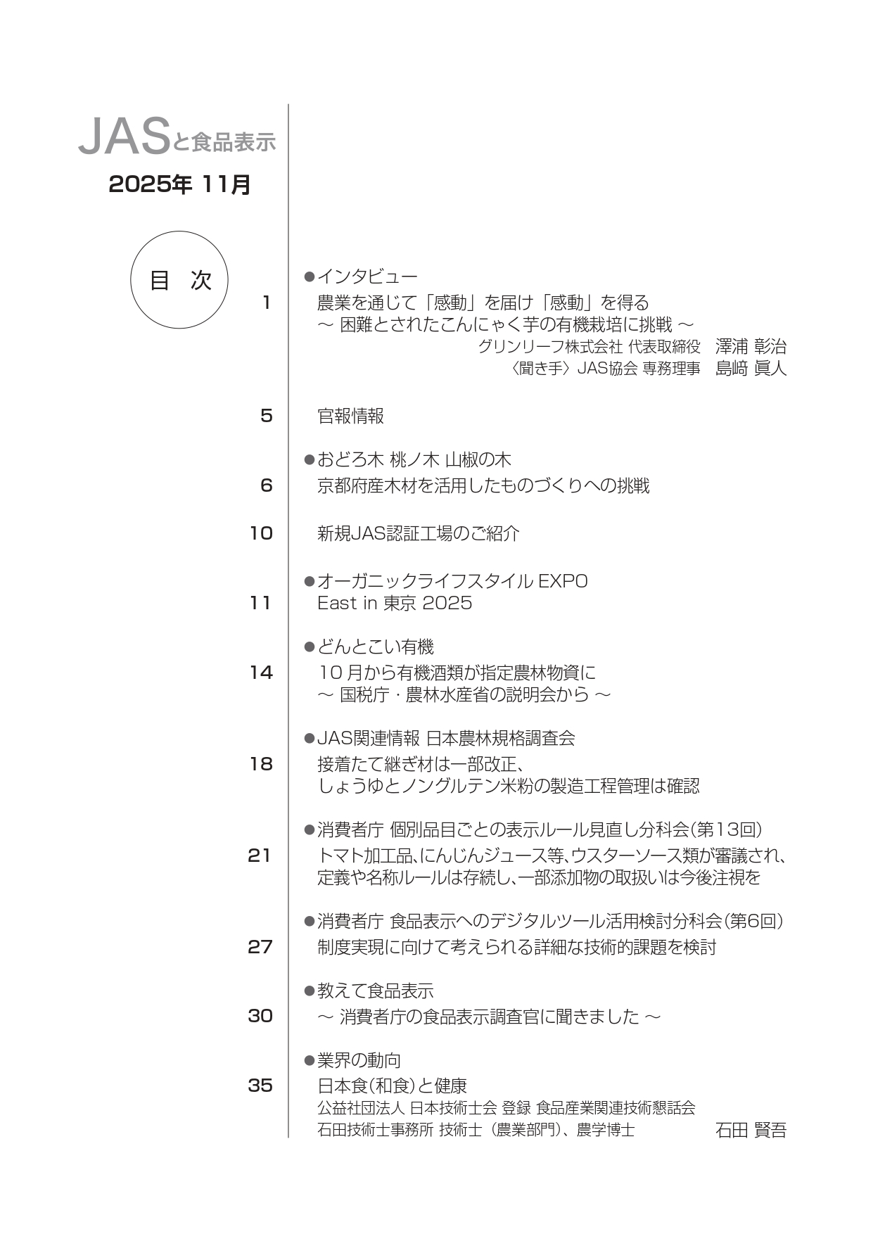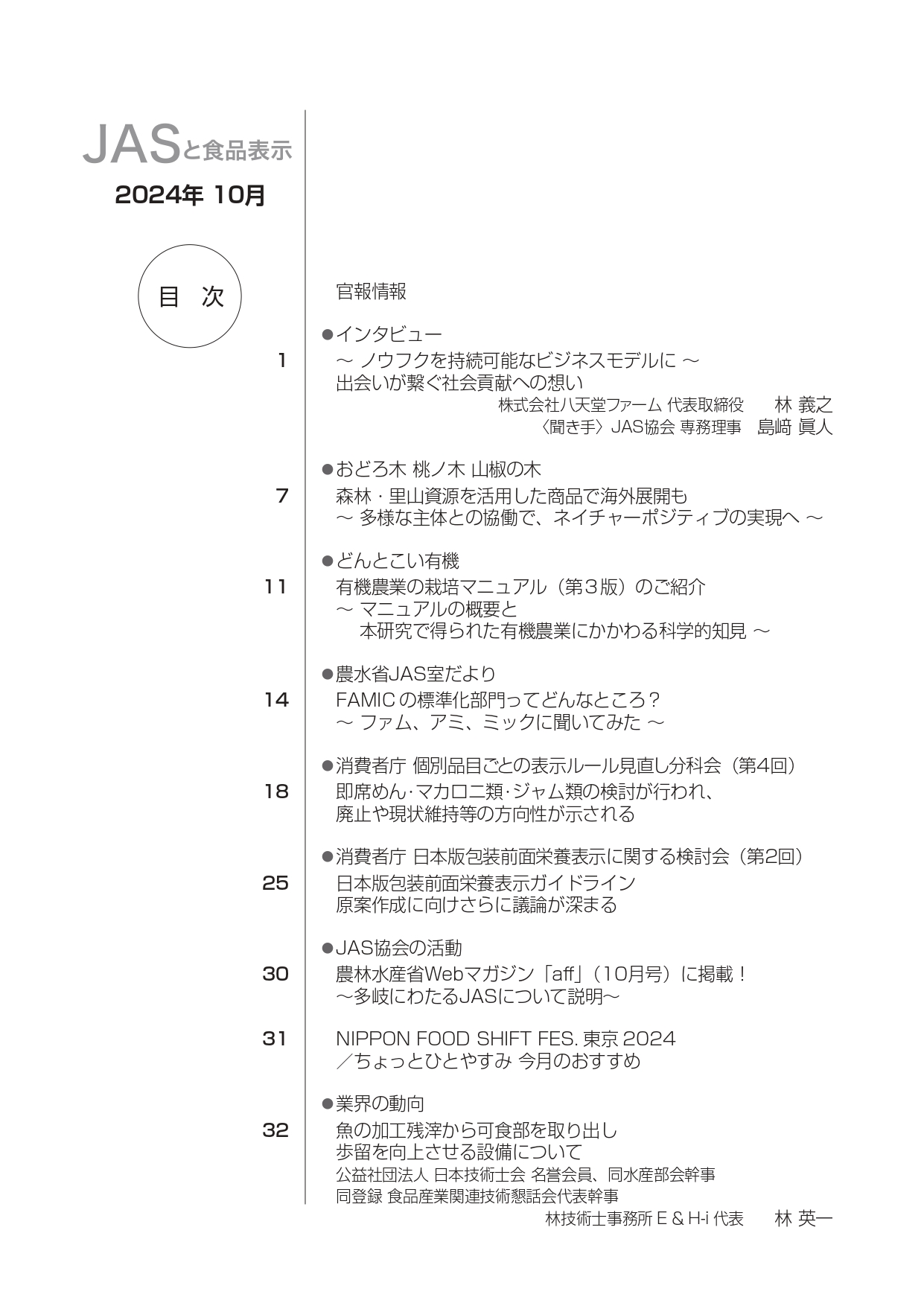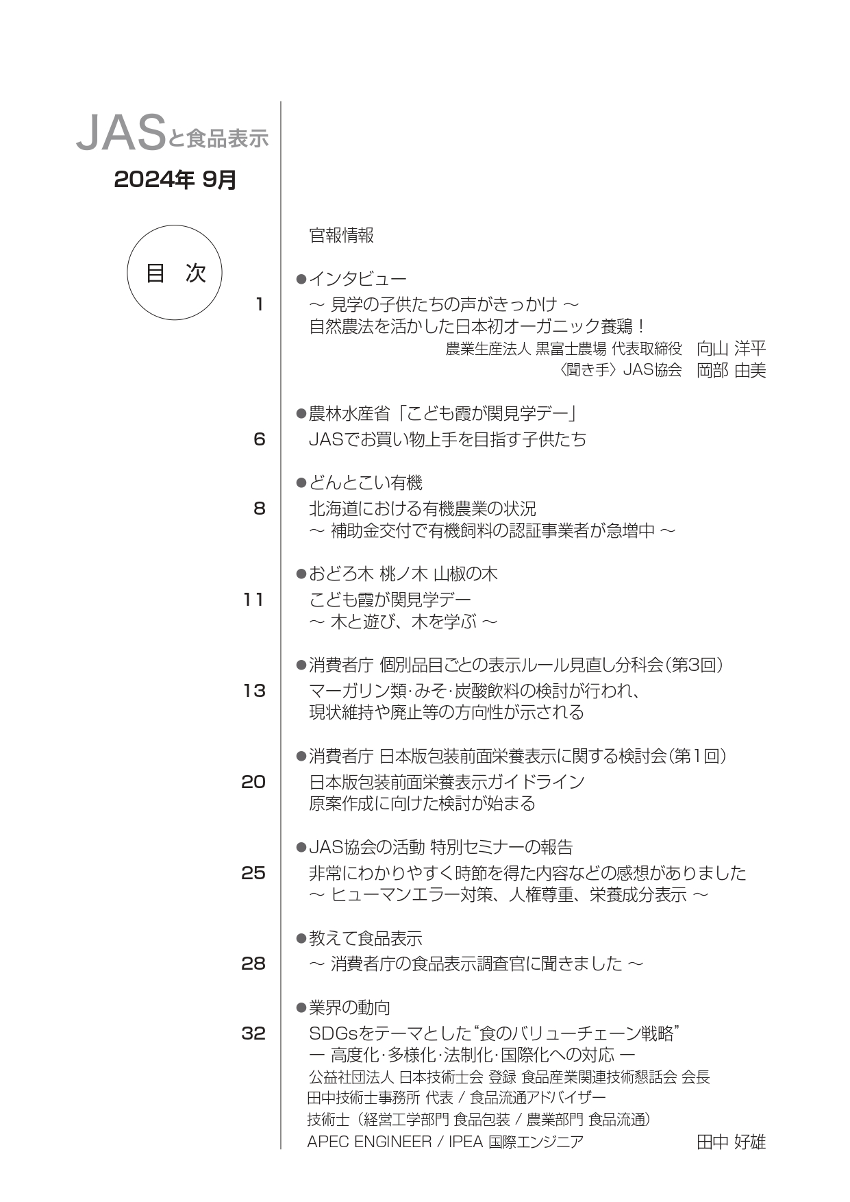 JASや食品表示に関するインタビューのほか、JASをめぐる最新の動向、